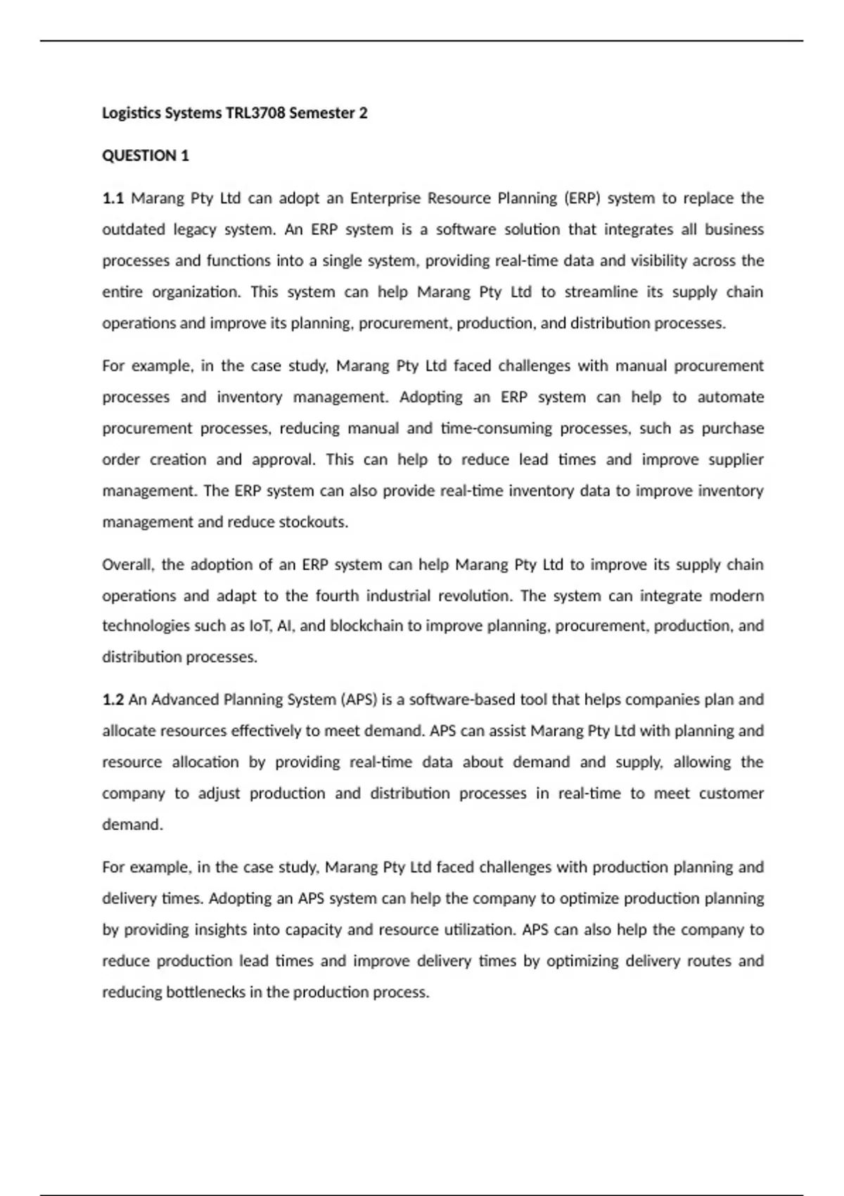 Overall, the adoption of an ERP system can help Marang Pty Ltd to improve its supply chain