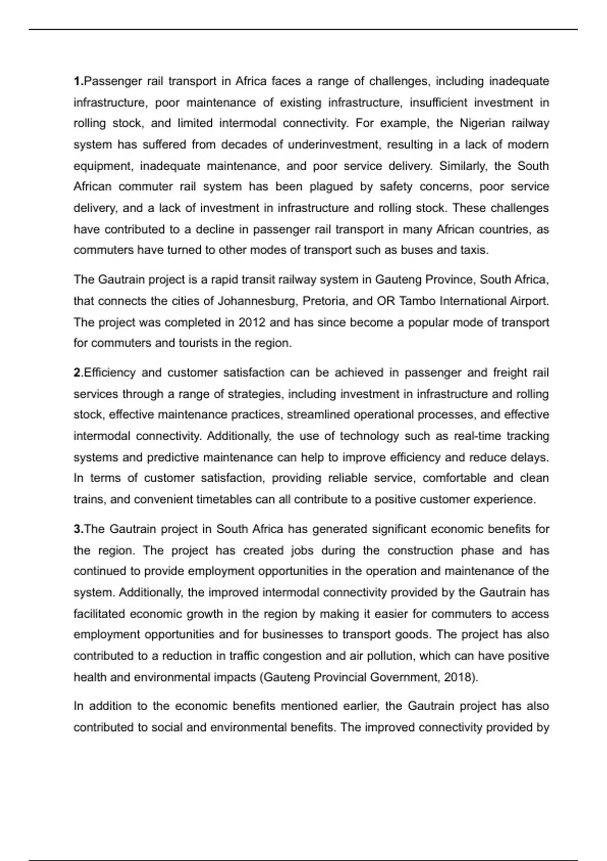 1.Passenger rail transport in Africa faces a range of challenges, including inadequate