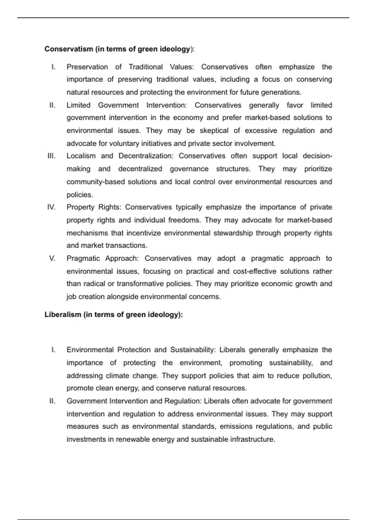 I. Environmental Protection and Sustainability: Liberals generally emphasize the