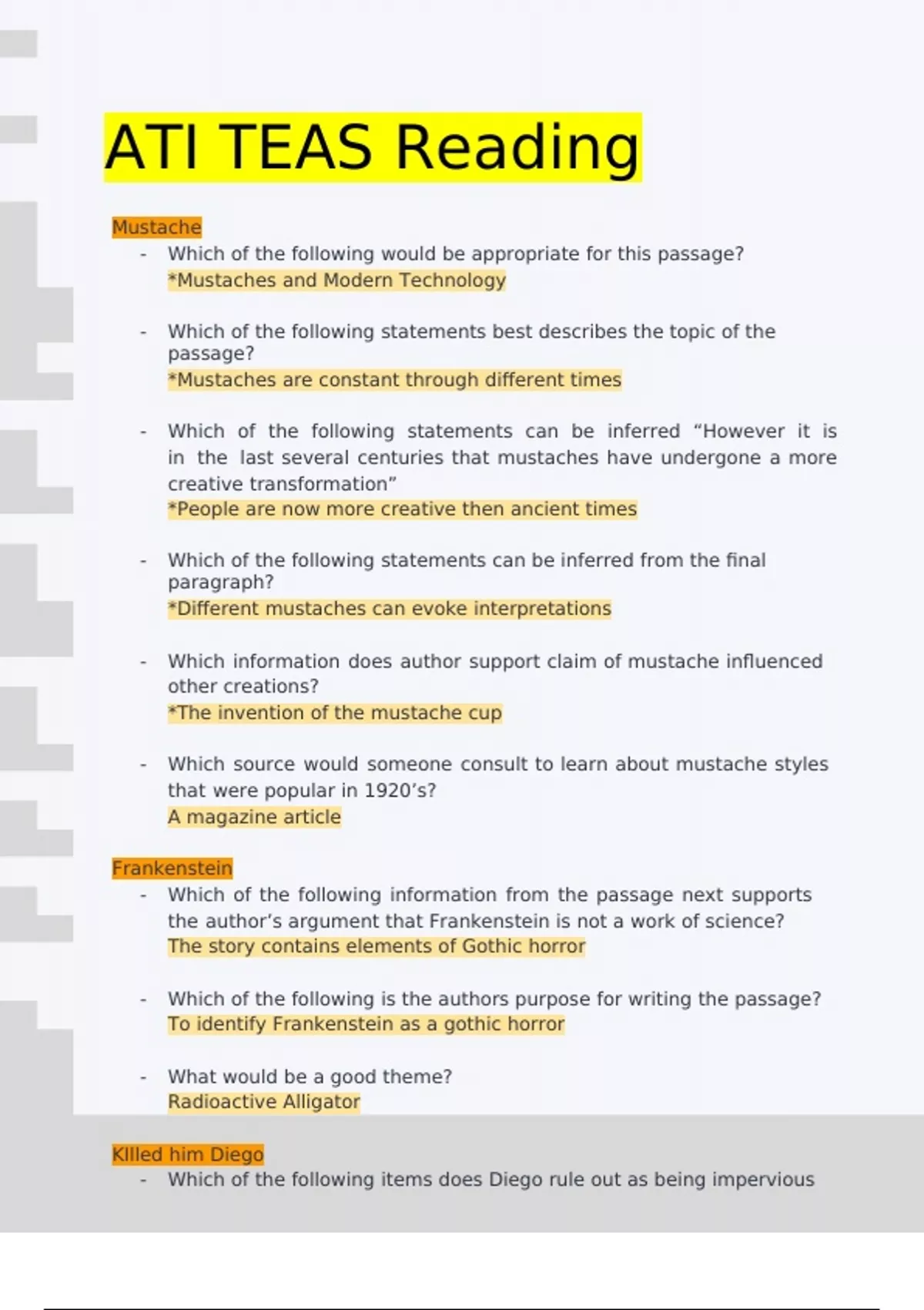 TEAS Reading Questions and Answers Latest (2023 / 2024) (Verified Answers)