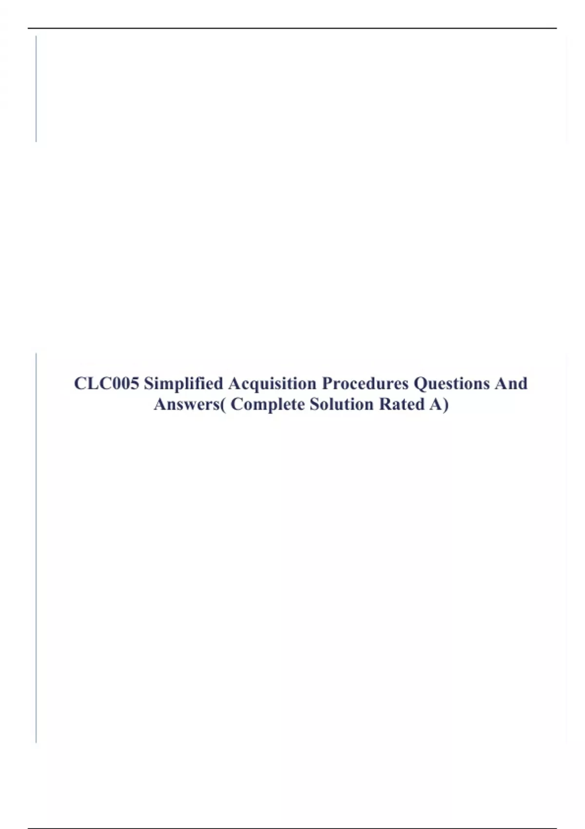 CLC005 Simplified Acquisition Procedures Questions And Answers( Complete Solution Rated A)