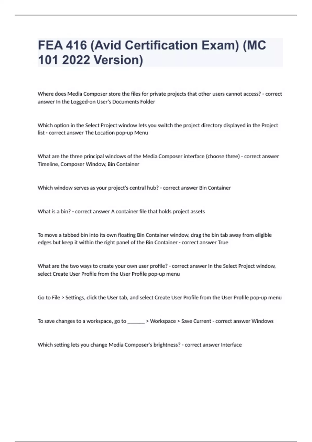 FEA 416 (Avid Certification Exam) (MC 101 2022 Version)