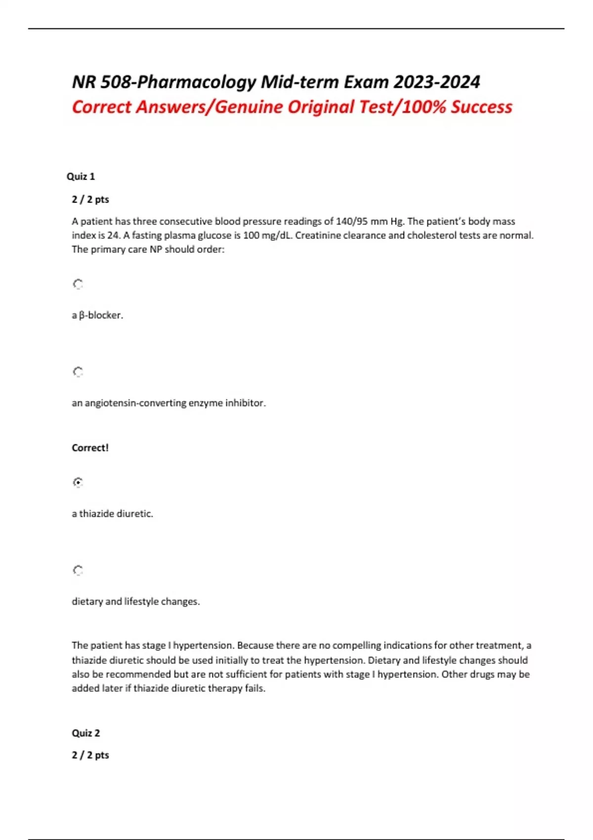 NR 508-Pharmacology Mid-term Exam Correct Answers/Genuine Original Test/100% Success