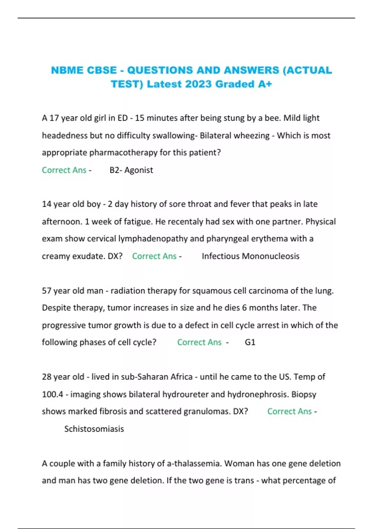NBME CBSE - QUESTIONS AND ANSWERS (ACTUAL TEST) Latest 2023 Graded A+