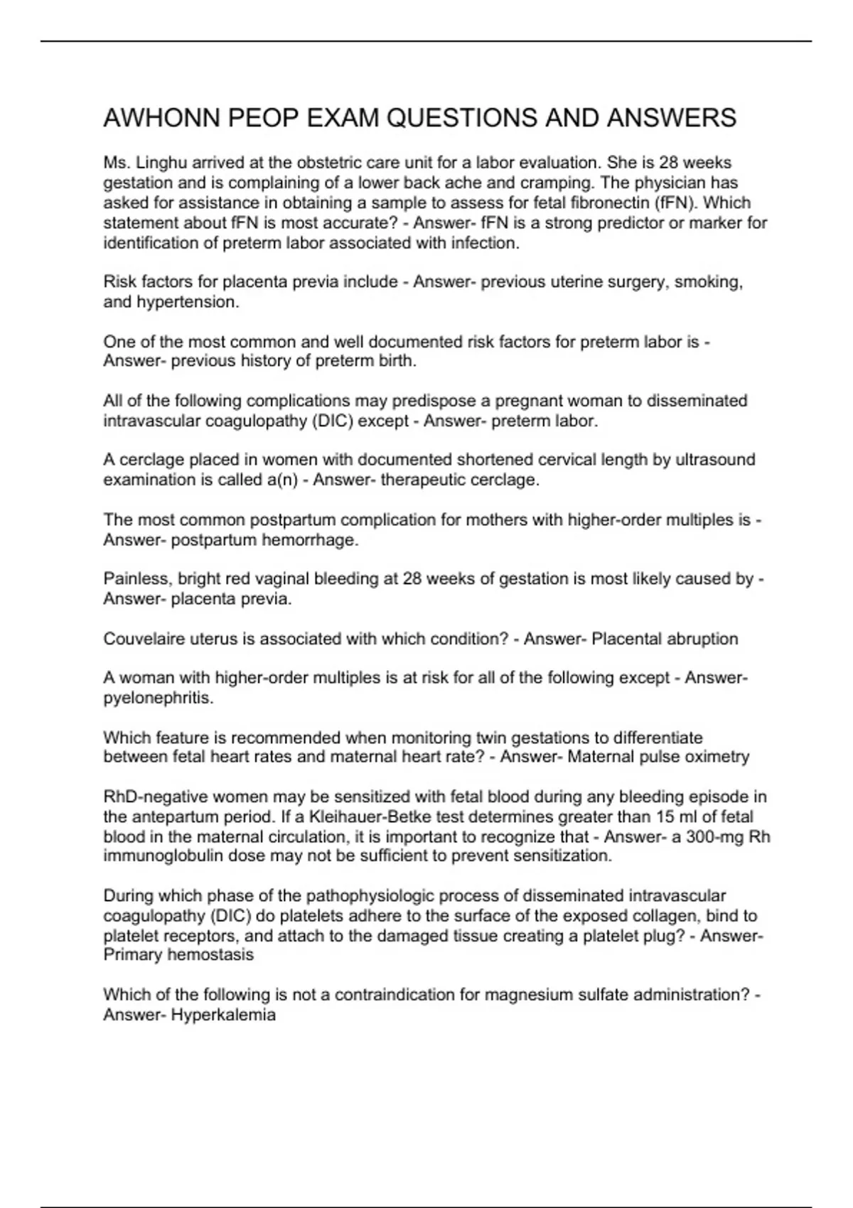 AWHONN PEOP EXAM QUESTIONS AND ANSWERS