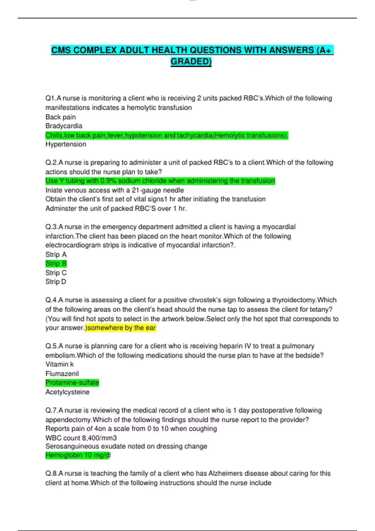 CMS COMPLEX ADULT HEALTH QUESTIONS WITH ANSWERS (A+ GRADED)