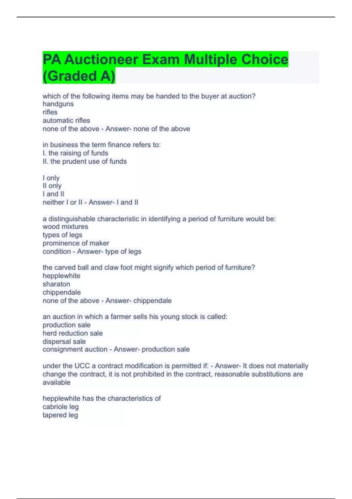 PA Auctioneer Exam Multiple Choice (Graded A)