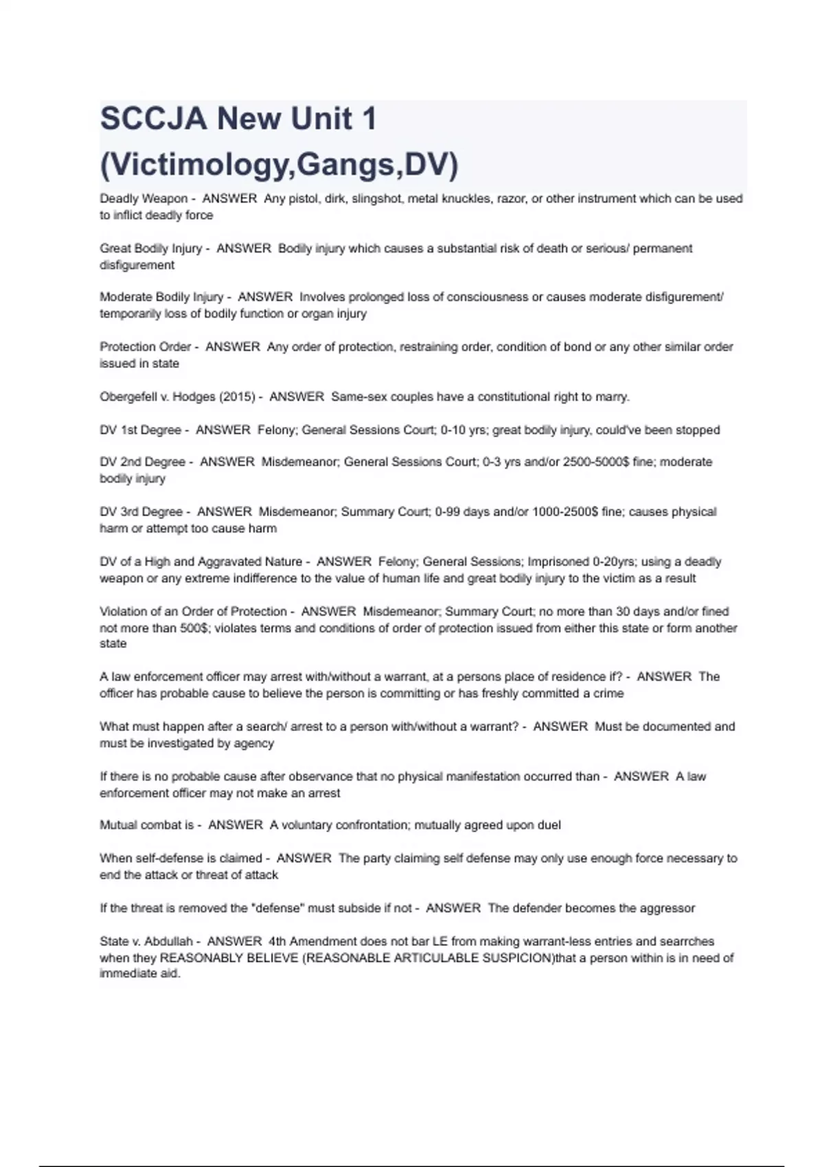 SCCJA New Unit 1 (Victimology,Gangs,DV) Actual Test |100% VERIFIED ANSWERS|A+ GRADED