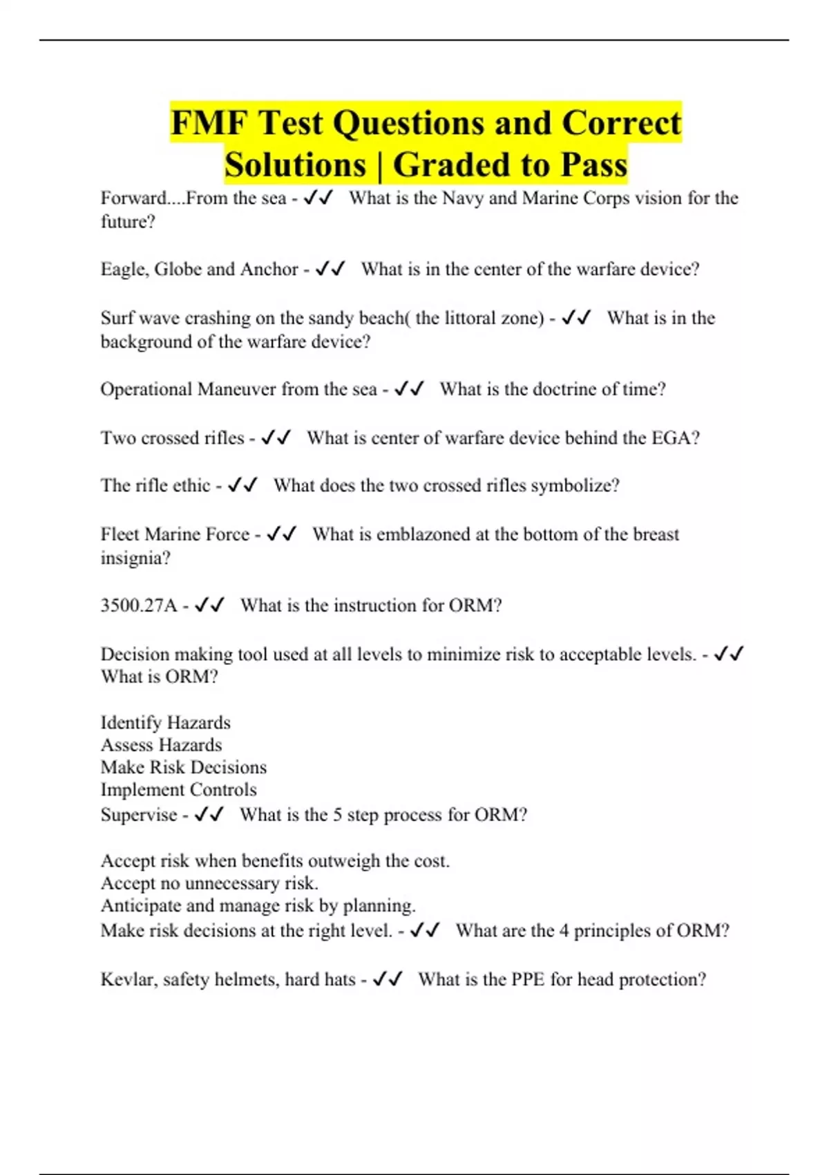 FMF Test Questions and Correct Solutions | Graded to Pass