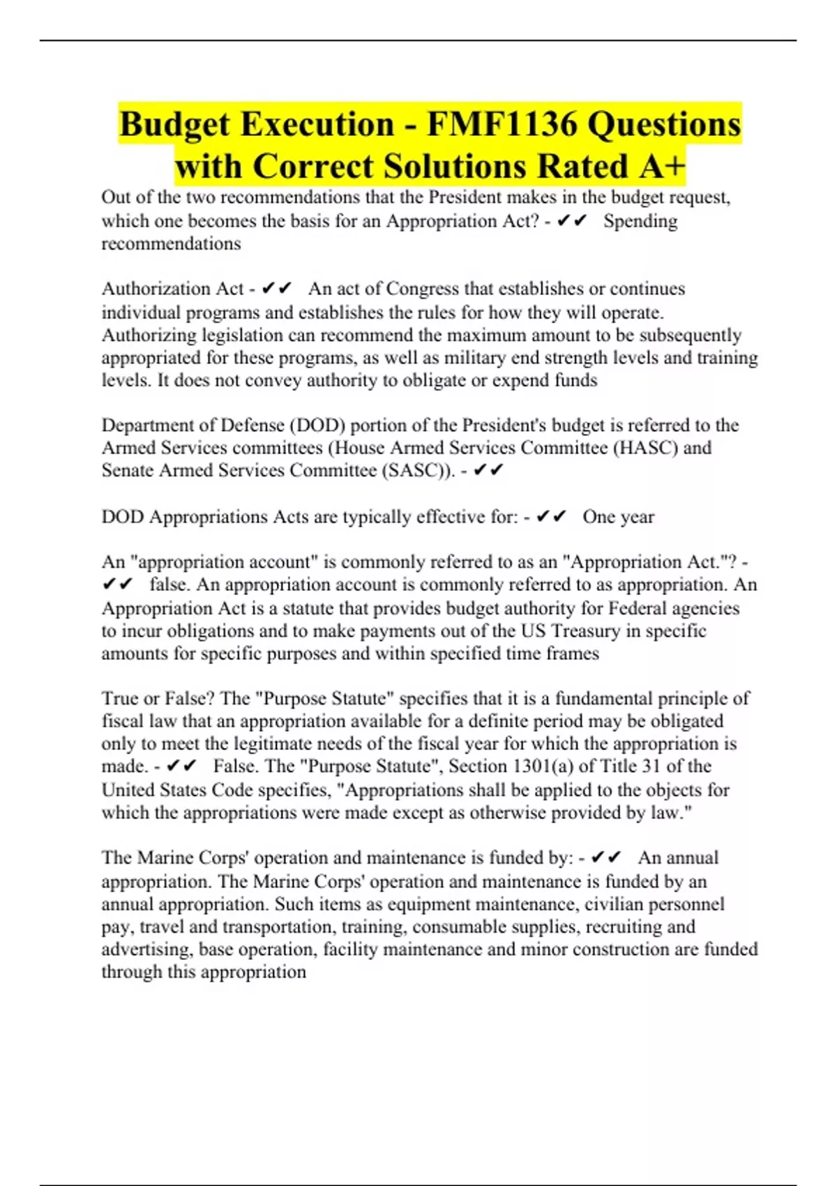 budget execution fmf1136 questions with correct