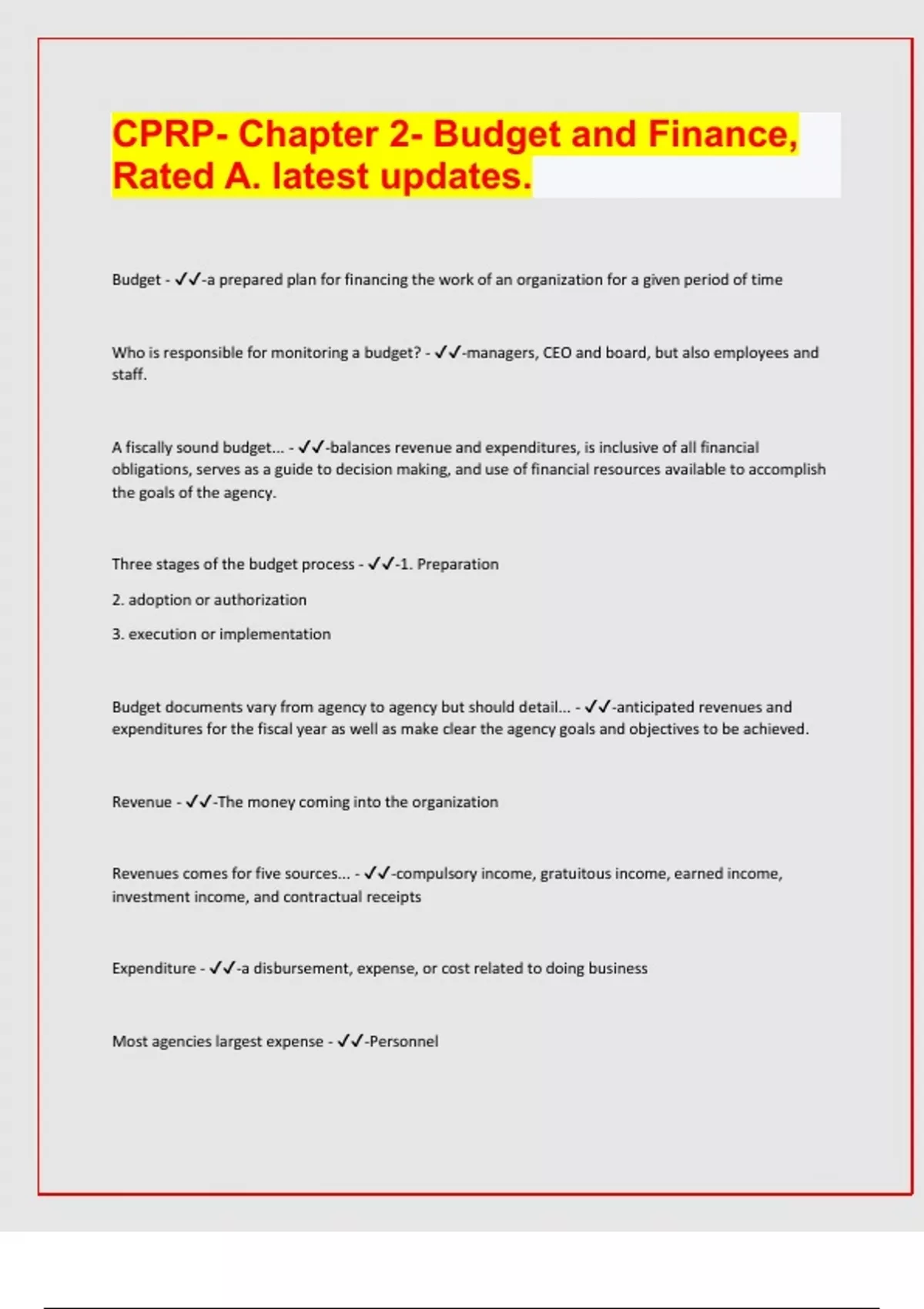 CPRP- Chapter 2- Budget and Finance, Rated A. latest updates.