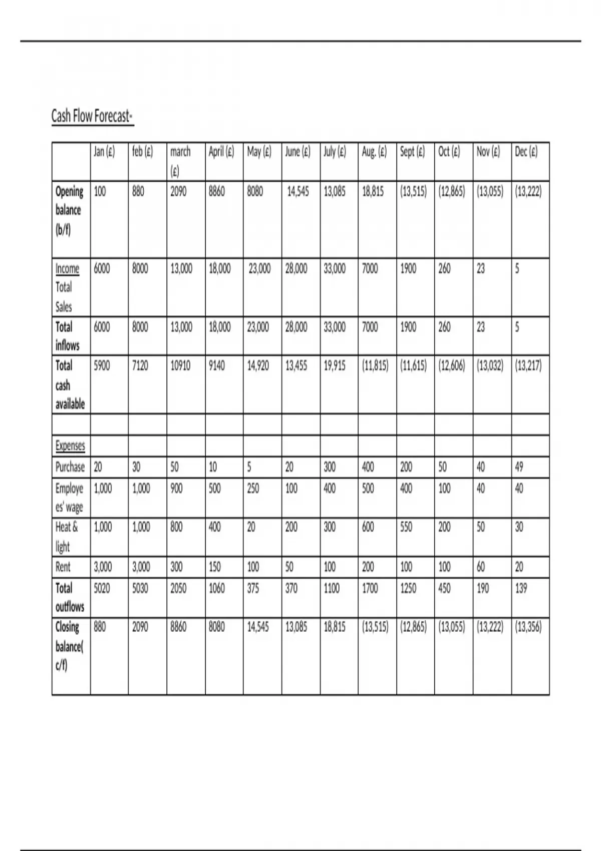 Jan (£) feb (£) march April (£) May (£) June (£) July (£) Aug. (£) Sept (£) Oct (£) Nov (£) Dec (£)