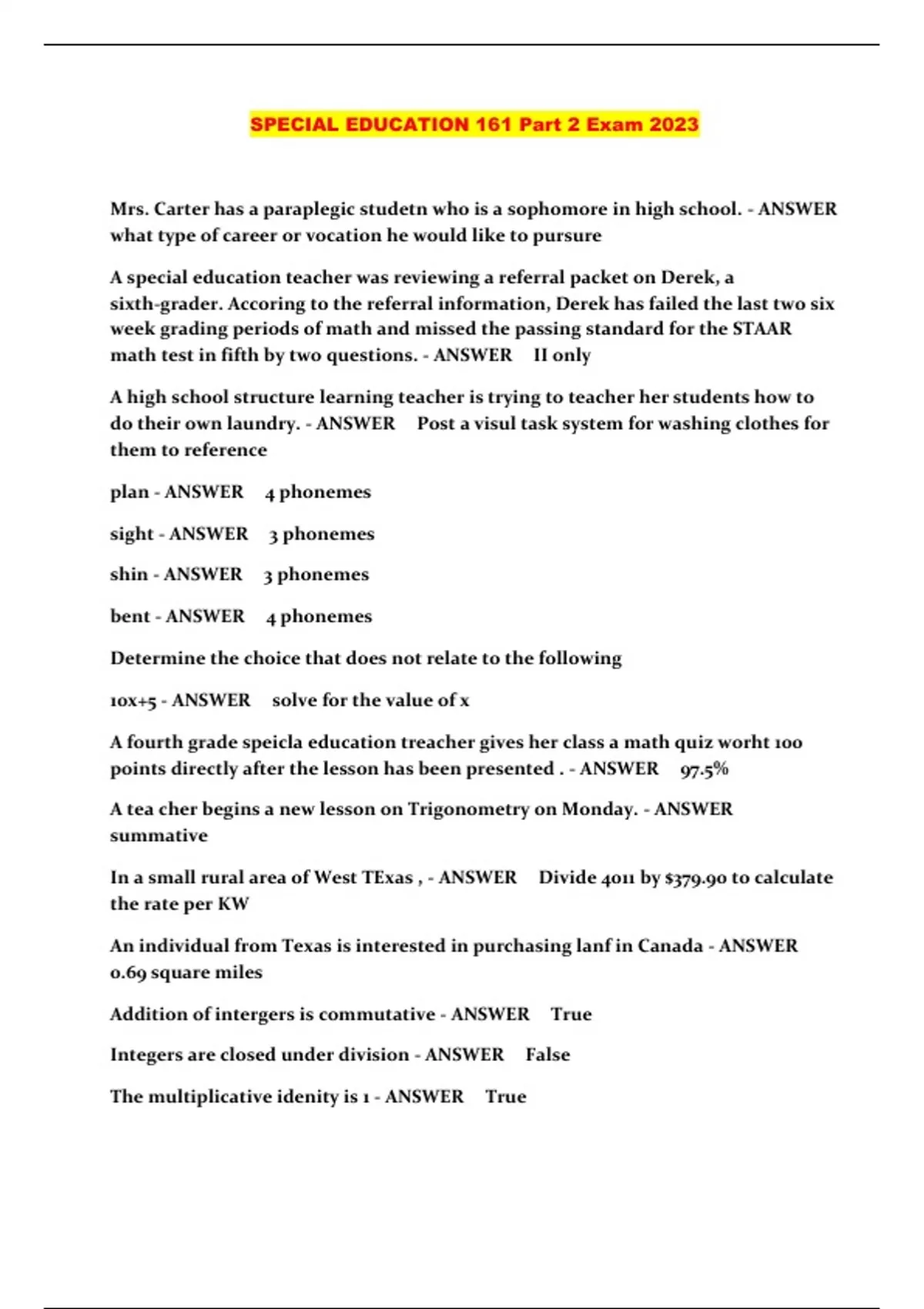 SPECIAL EDUCATION 161 Part 2 Exam 2023...