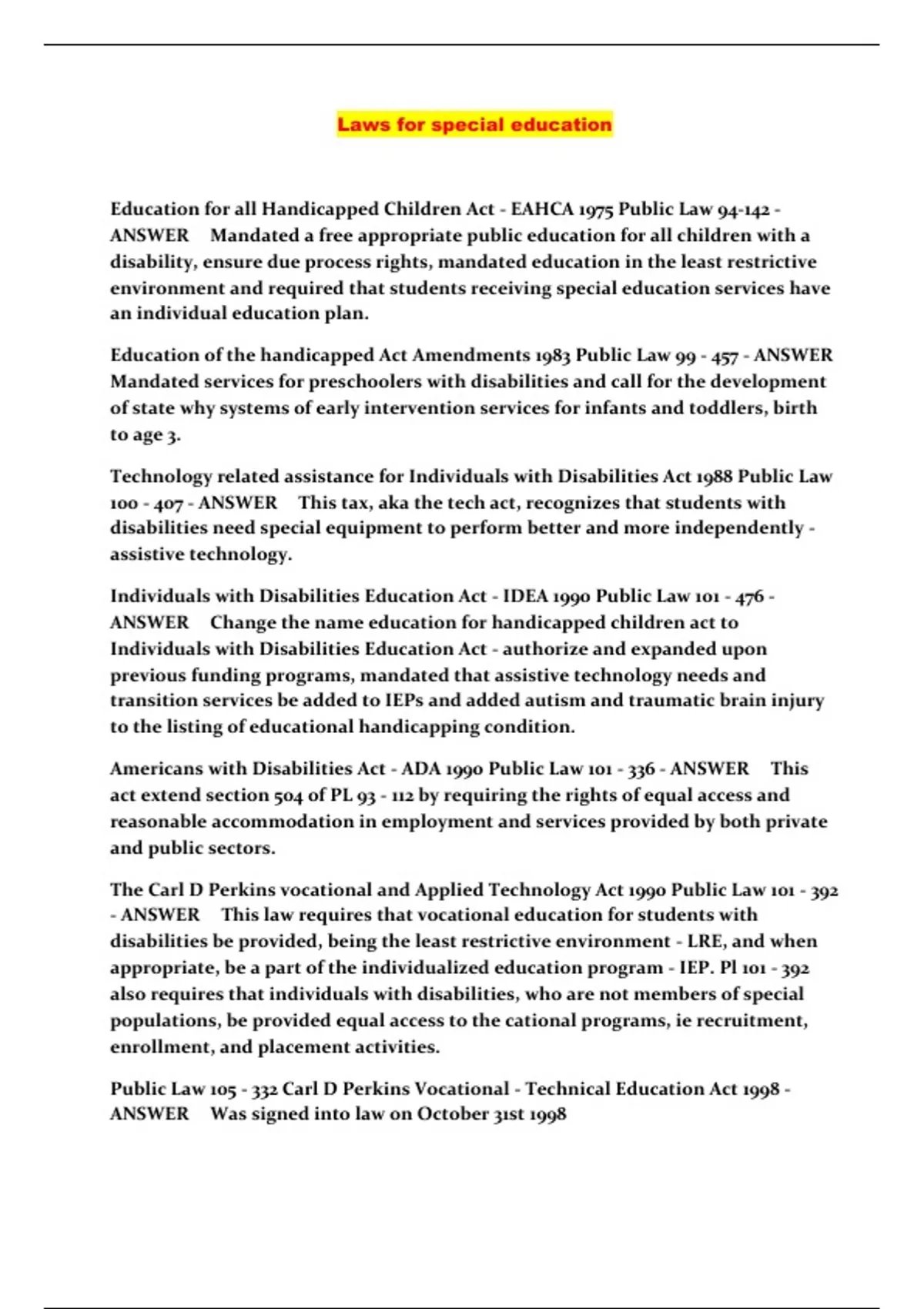 - Laws for special education