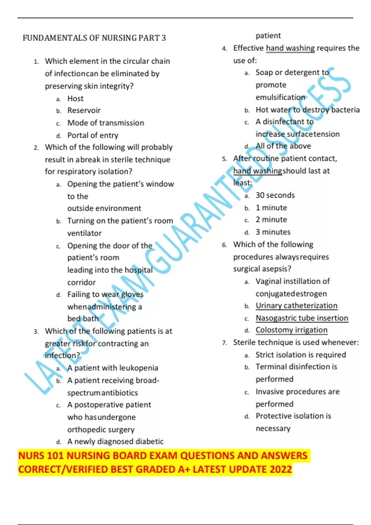 NURS 101 NURSING BOARD EXAM QUESTIONS AND ANSWERS