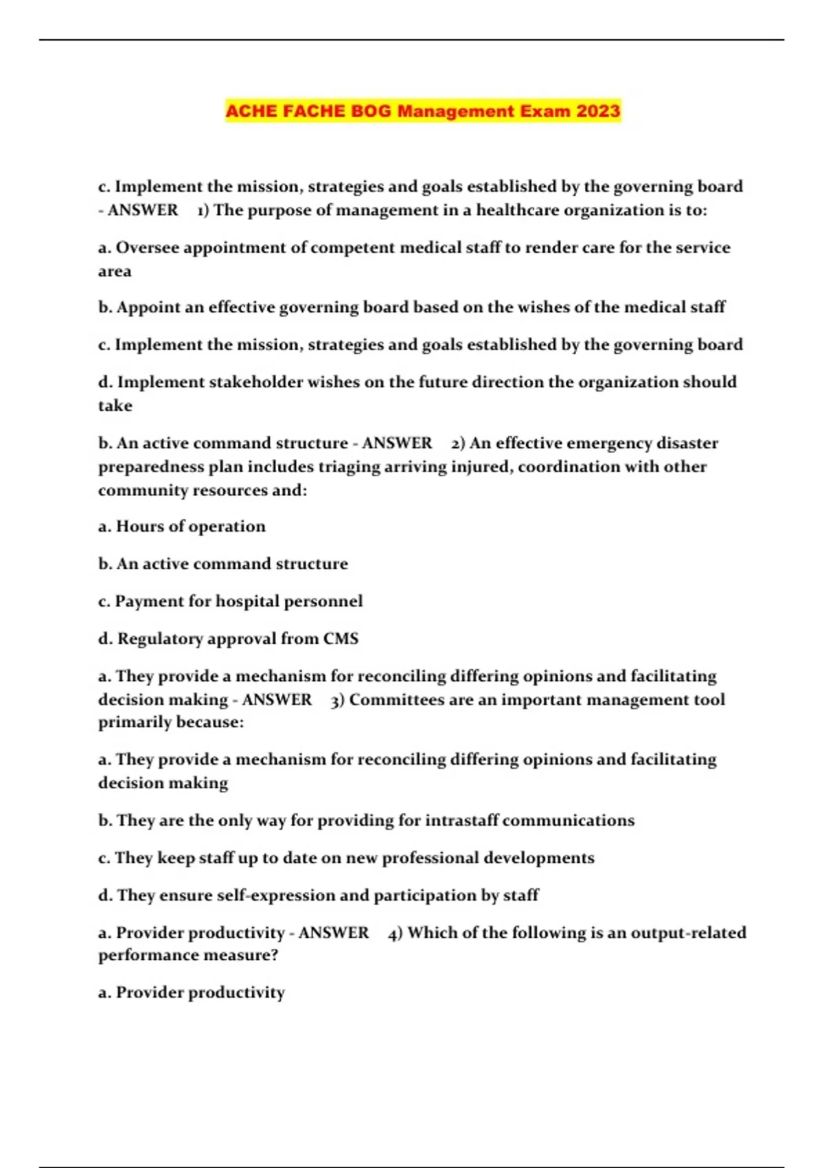 ACHE FACHE BOG Management Exam 2023...