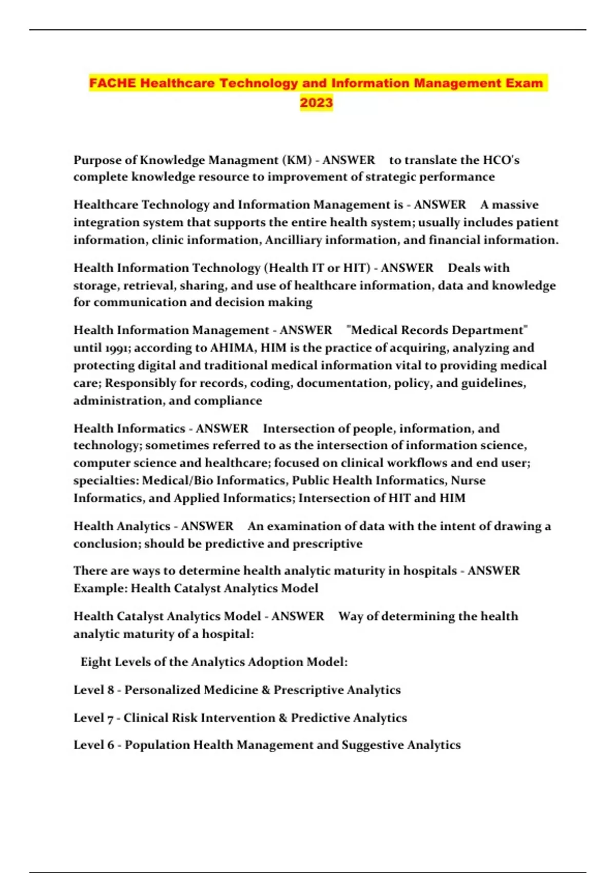 FACHE Healthcare Technology and Information Management Exam 2023...