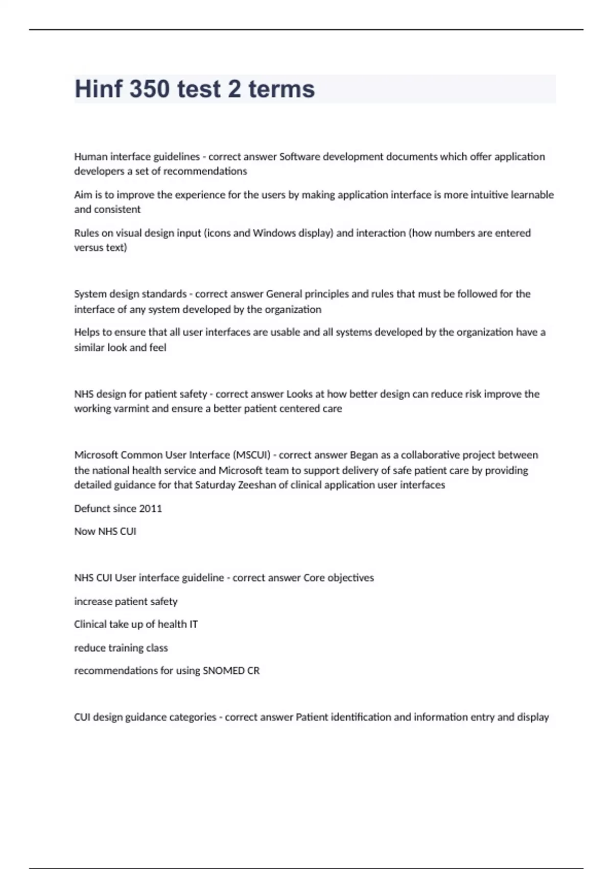 Hinf 350 test 2 terms question with verified solution 2023
