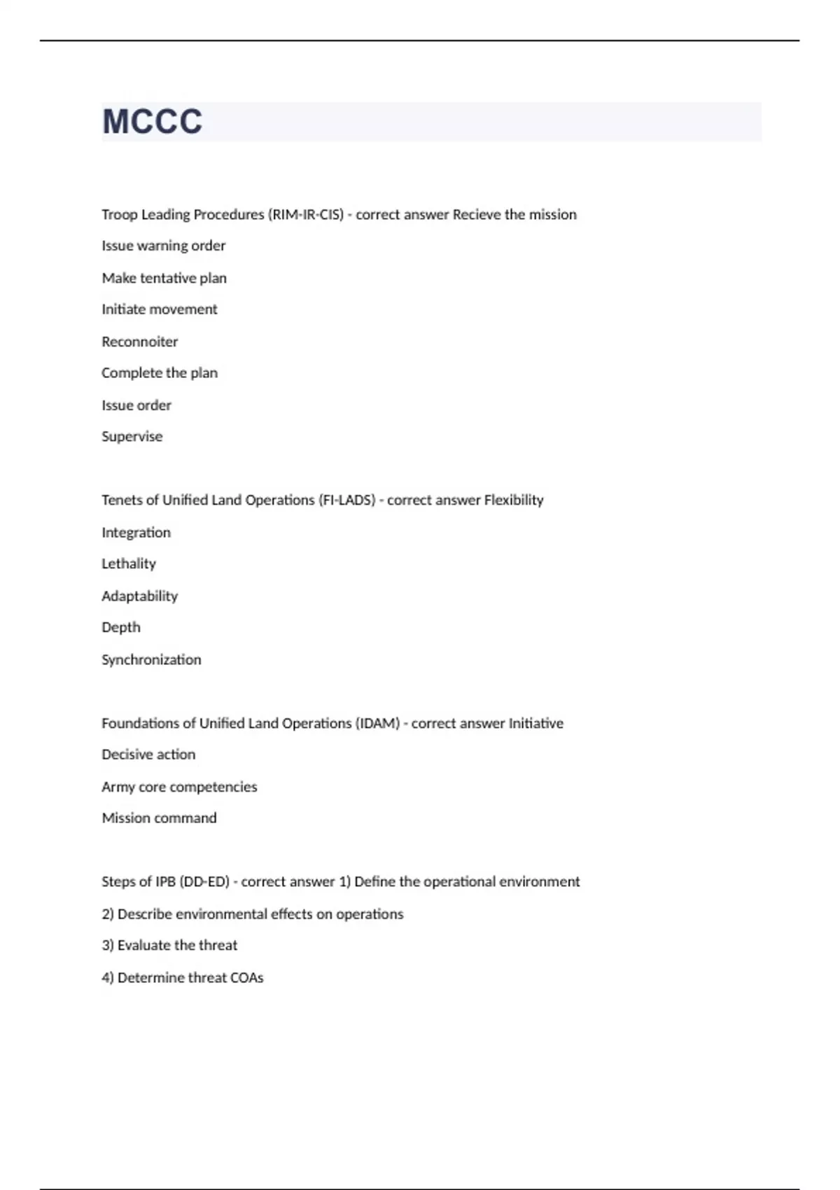 MCCC question n answers rtaed A+ 2023 passed