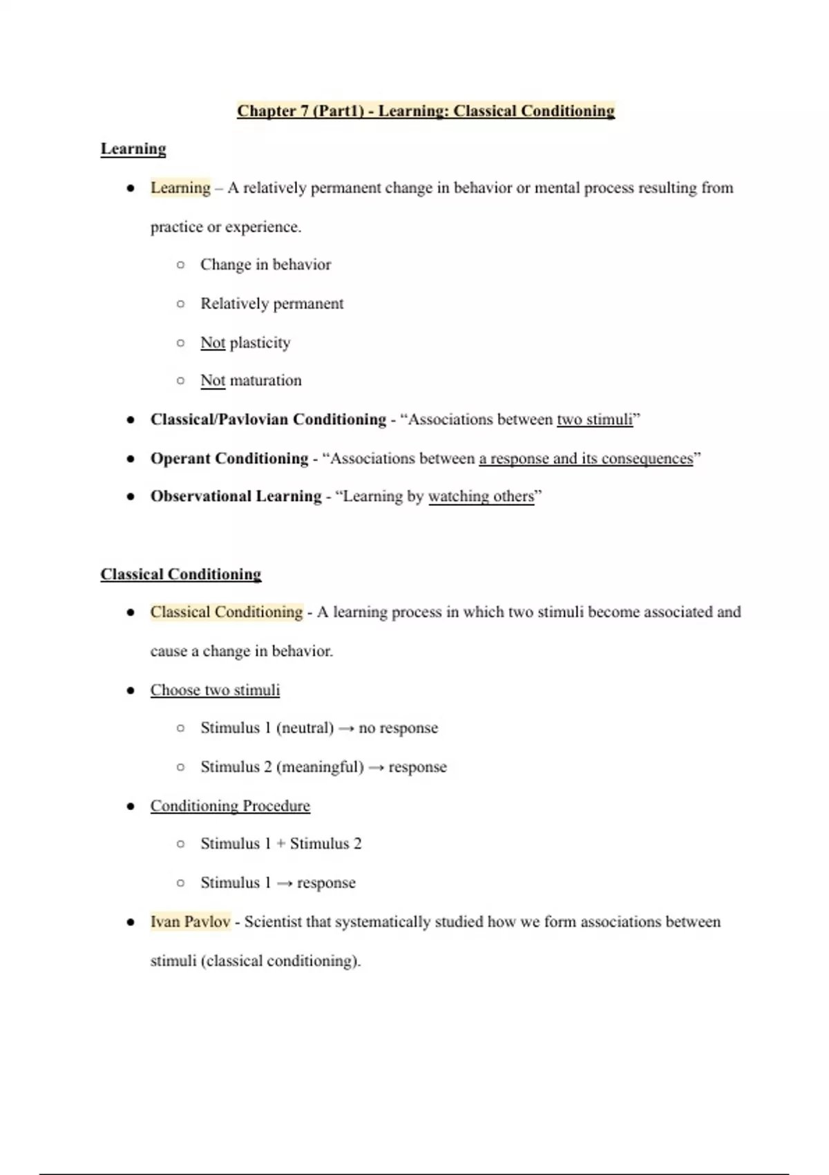 Kent State University General Psychology Module 3 Notes with Professor Joynes. These notes include all of the material from the PowerPoints and all of her lectures from in class. This includes material going over Learning, classical conditioning, Pavlov, operant conditioning, observational conditioning, memory, encoding and storage of memory, retrieval and forgetting, cognition, problem-solving, and decision-making.