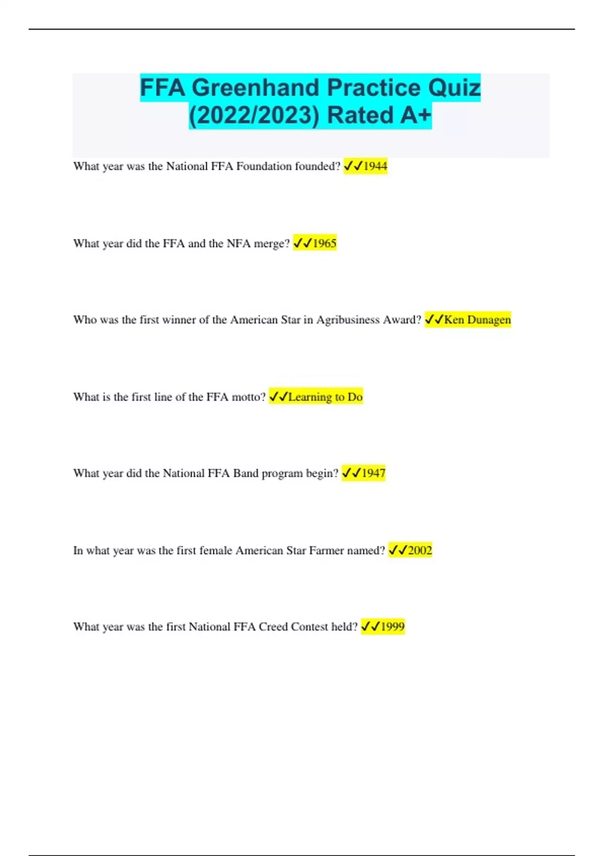 FFA Greenhand Practice Quiz (2022/2023) Rated A+