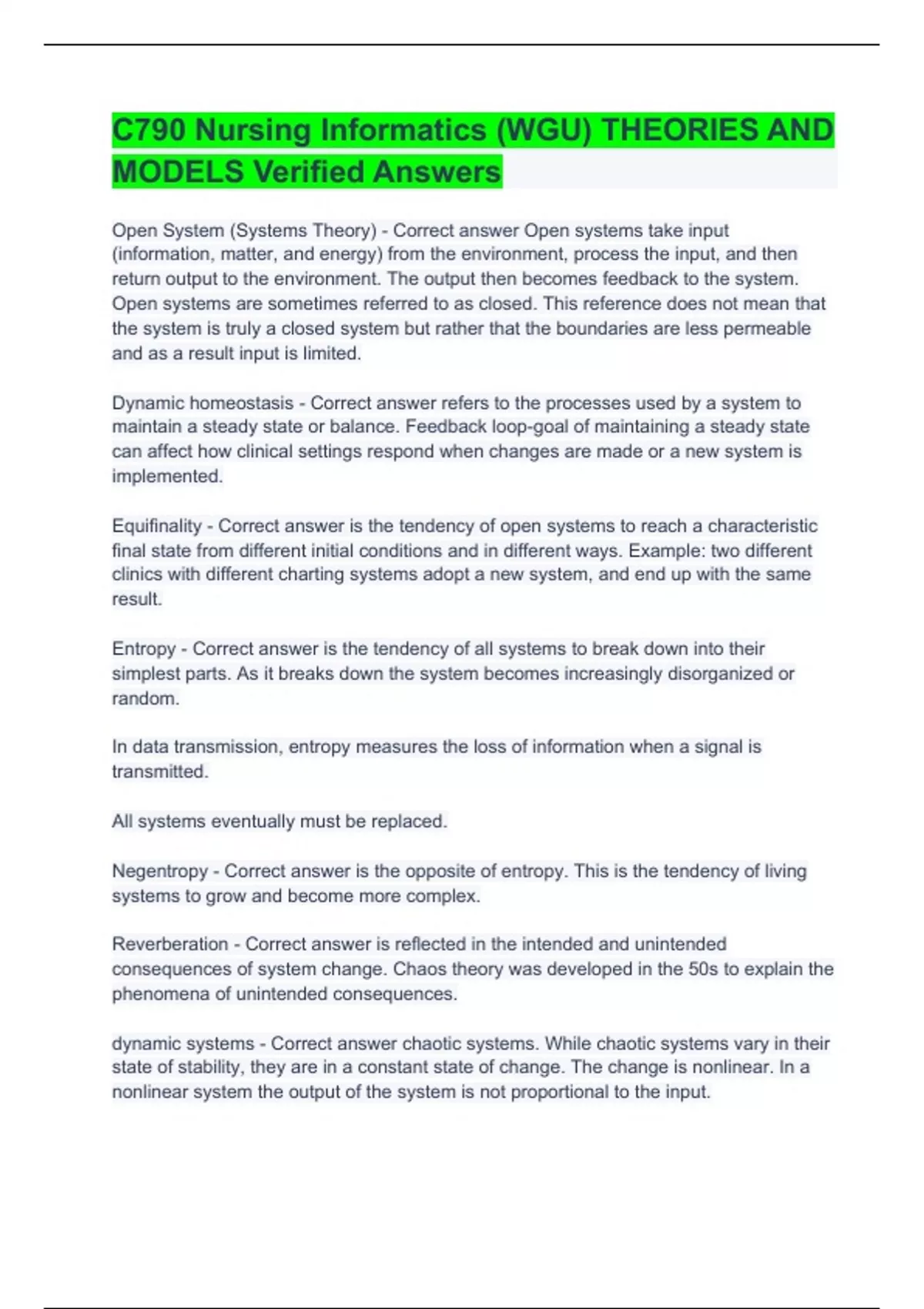 C790 Nursing Informatics (WGU) THEORIES AND MODELS Verified AnswersC790 Nursing Informatics (WGU) THEORIES AND MODELS Verified Answers