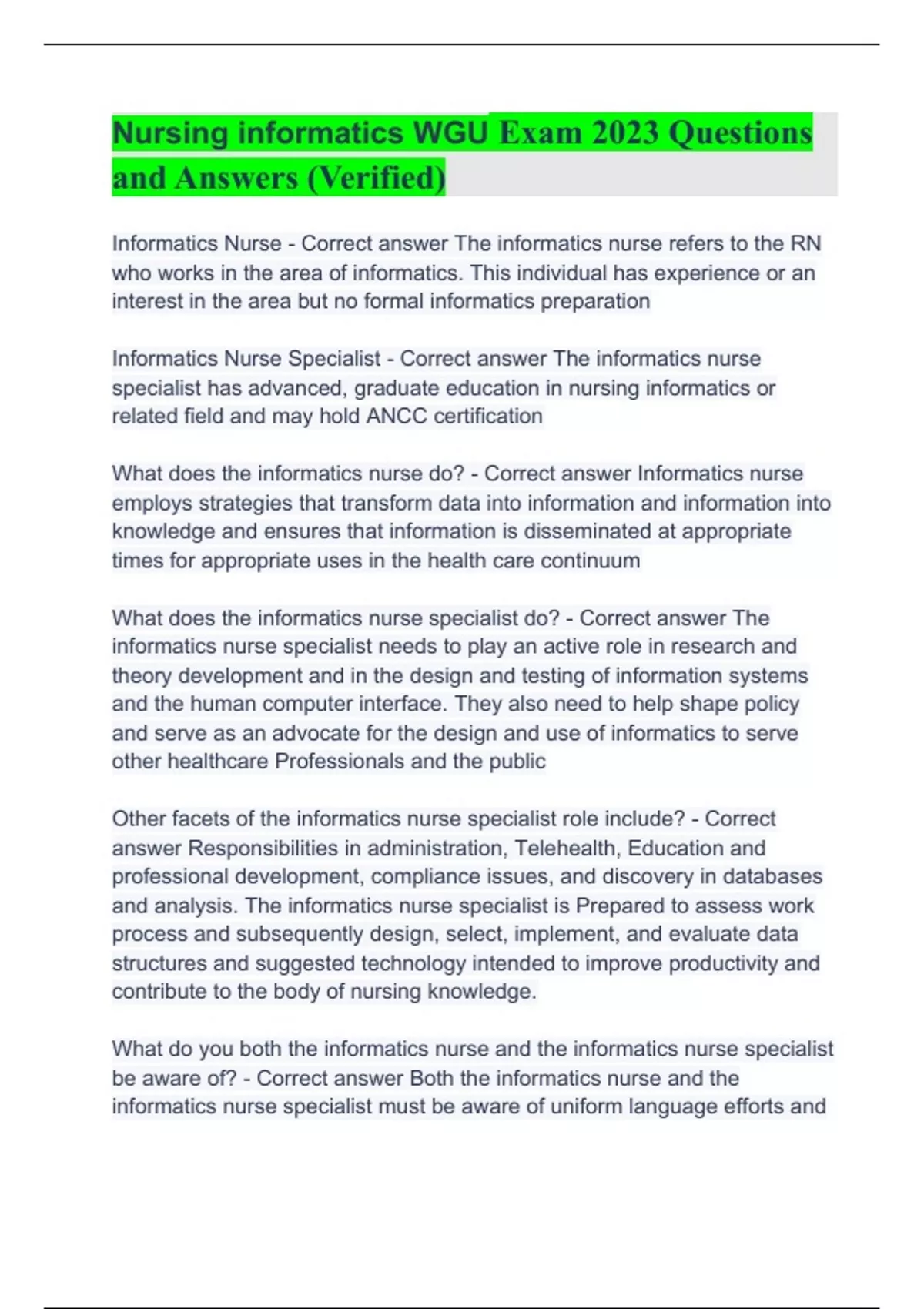 Nursing informatics WGU Exam 2023 Questions and Answers (Verified)Nursing informatics WGU Exam 2023 Questions and Answers (Verified)