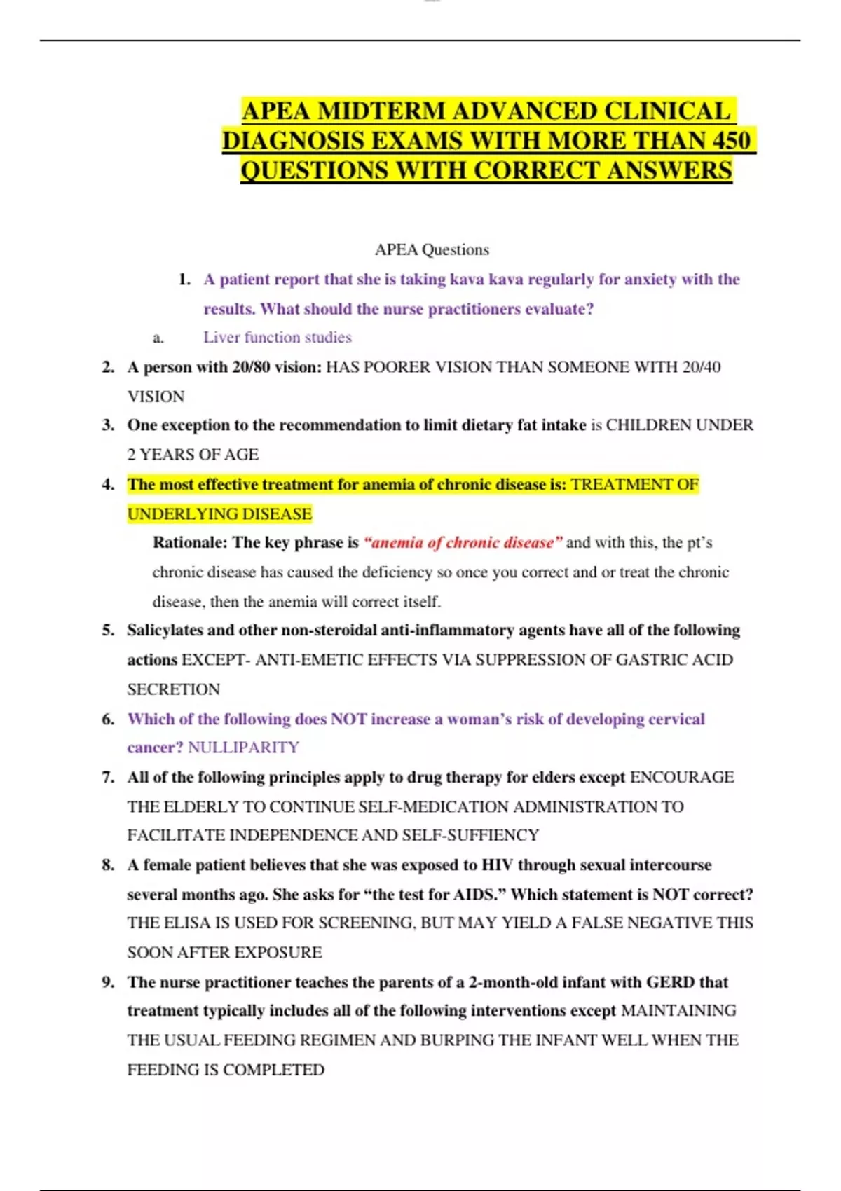 APEA MIDTERM ADVANCED CLINICAL DIAGNOSIS EXAMS WITH MORE THAN 450 QUESTIONS WITH CORRECT ANSWERS