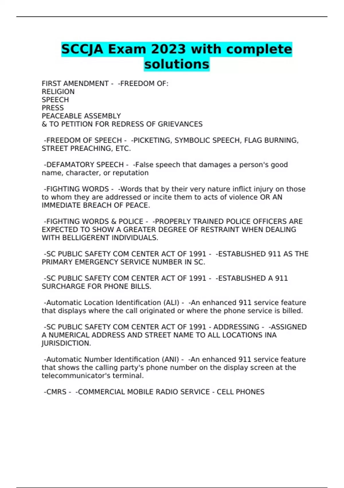 SCCJA Exam 2023 with complete