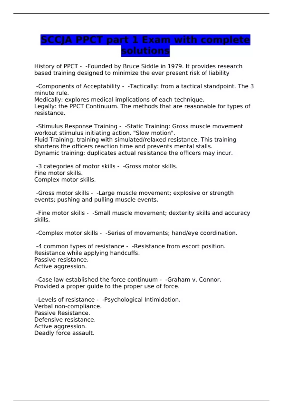 SCCJA PPCT part 1 Exam with complete