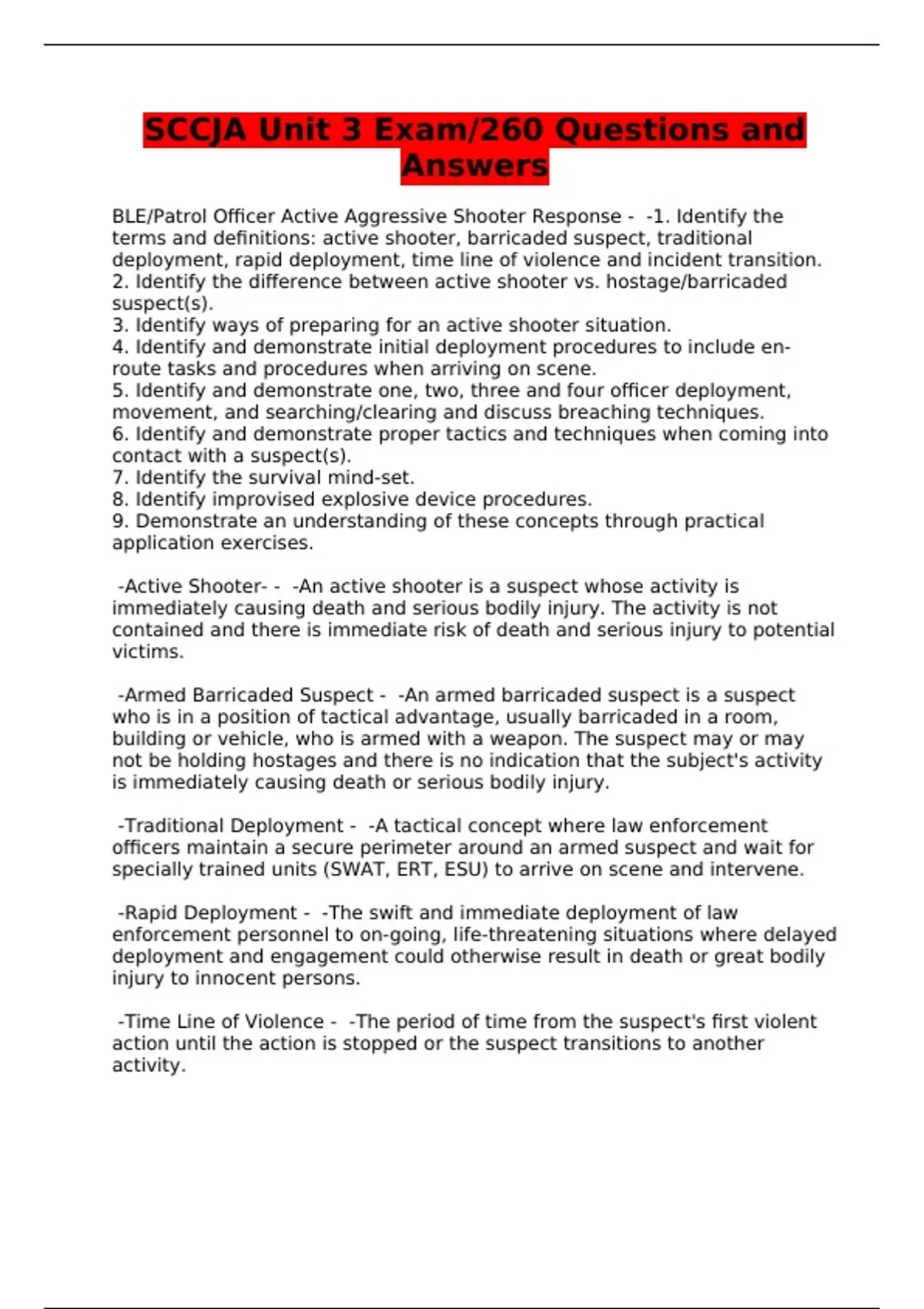 SCCJA Unit 3 Exam/260 Questions and