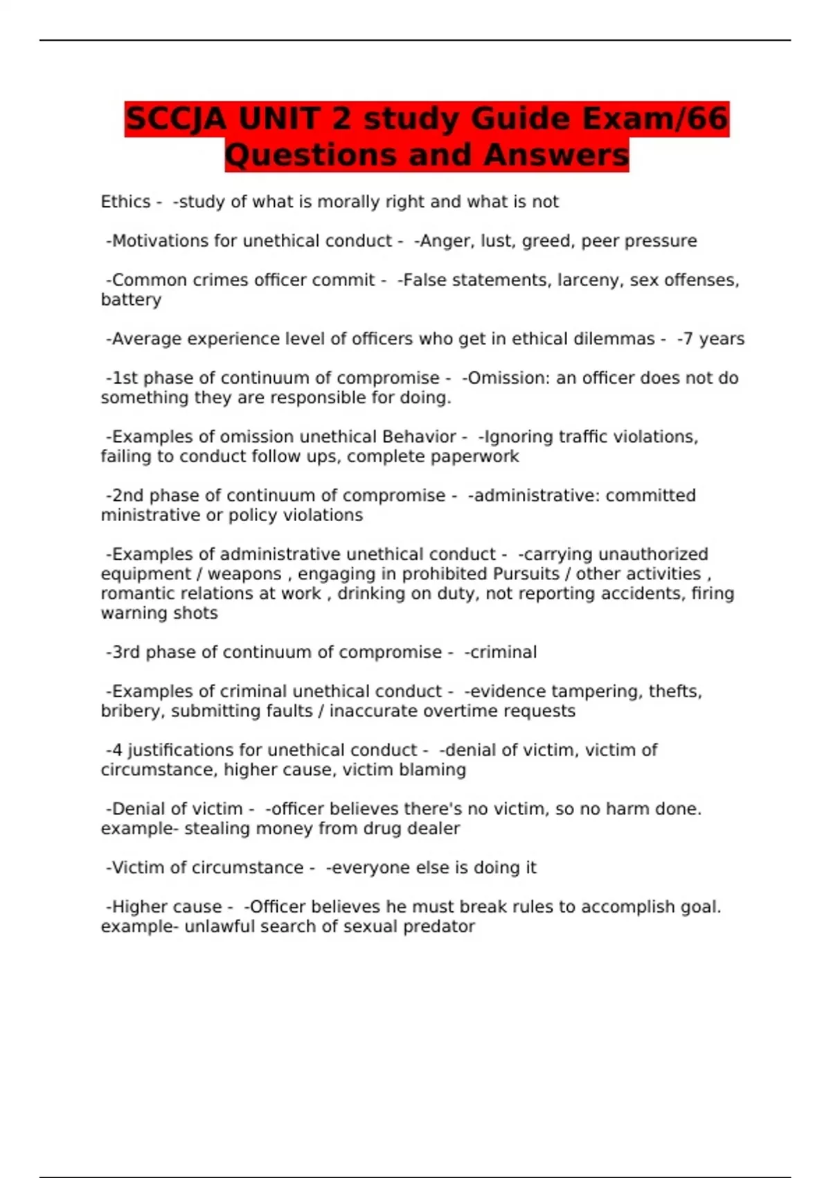 SCCJA UNIT 2 study Guide Exam/66 Questions and Answers