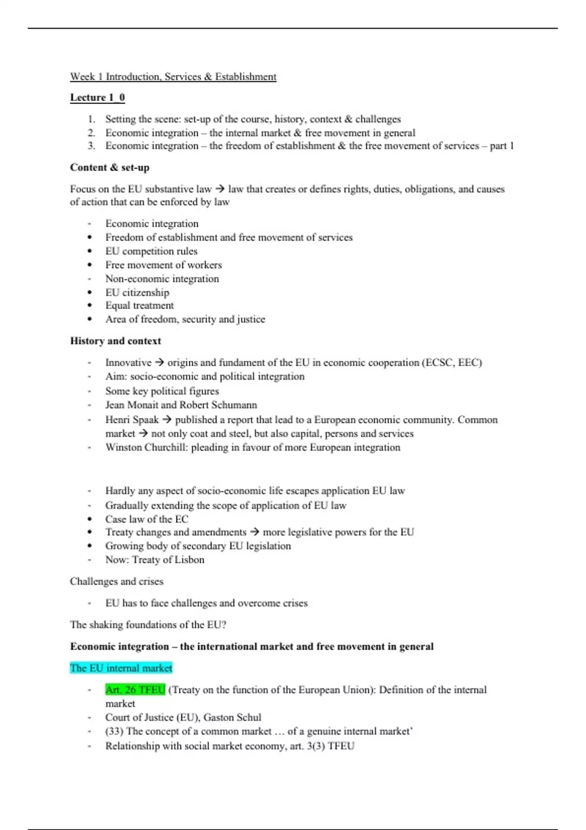 3. Economic integration – the freedom of establishment & the free movement of services – part 1