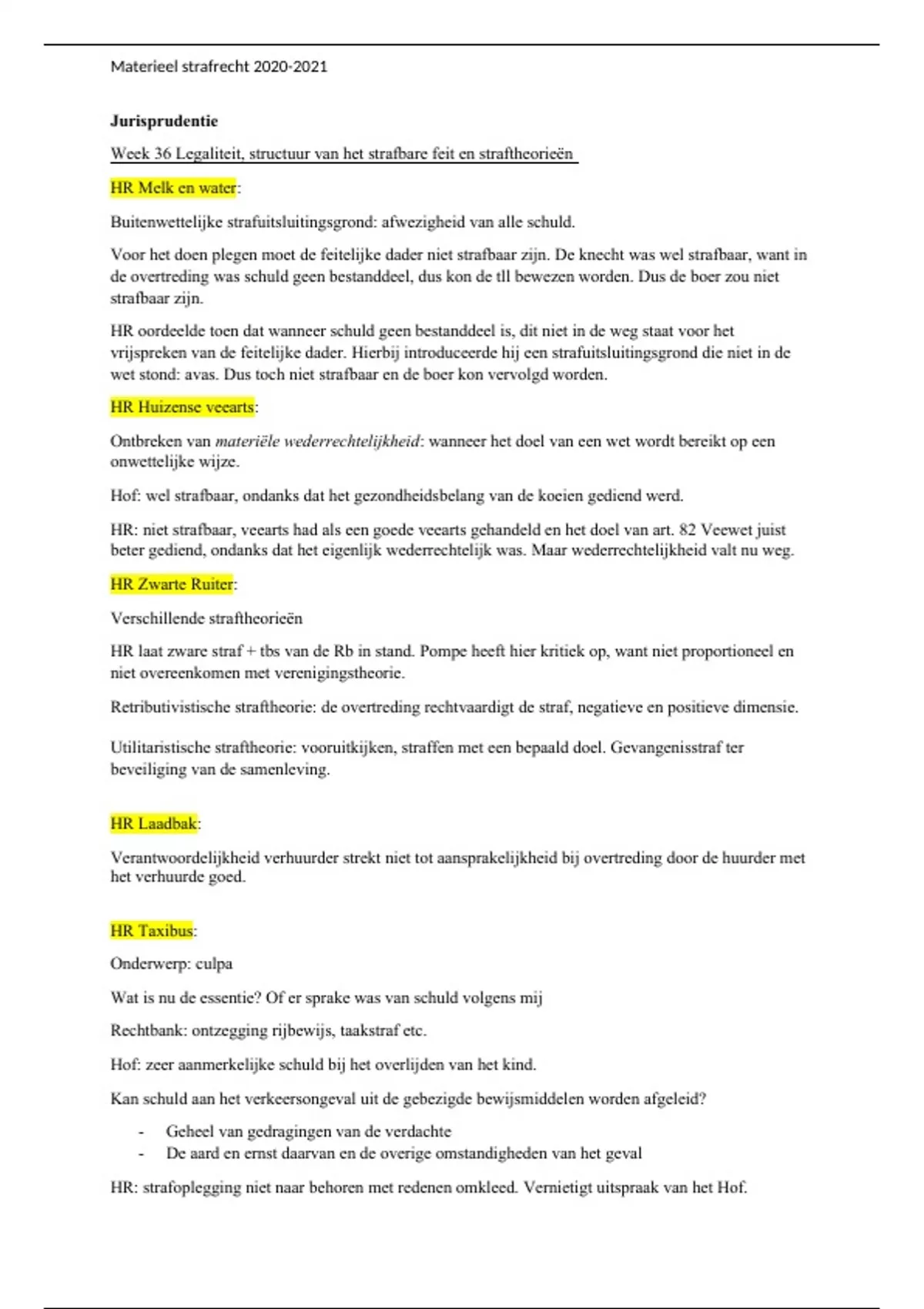 Week 36 Legaliteit, structuur van het strafbare feit en straftheorieën