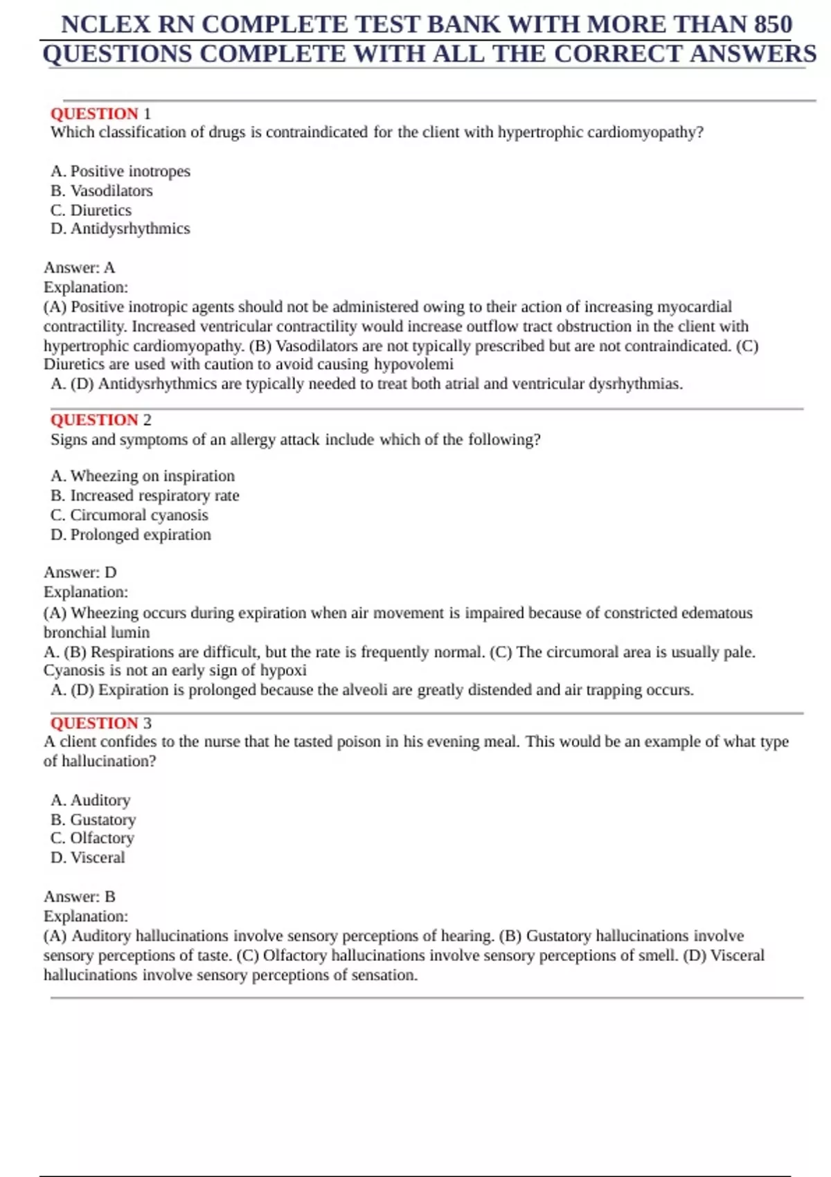 NCLEX RN COMPLETE TEST BANK WITH MORE THAN 850
