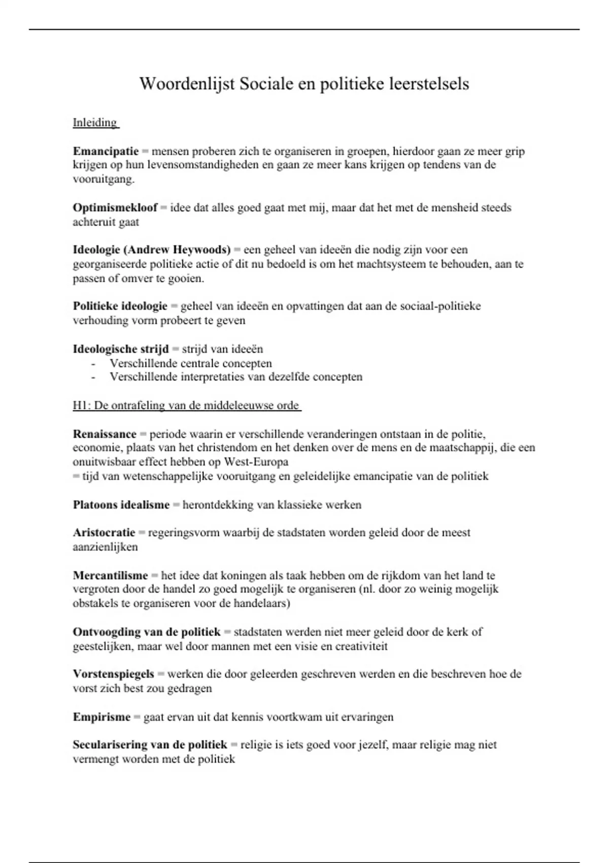 Samenvatting Woordenlijst sociale en politieke leerstelsels