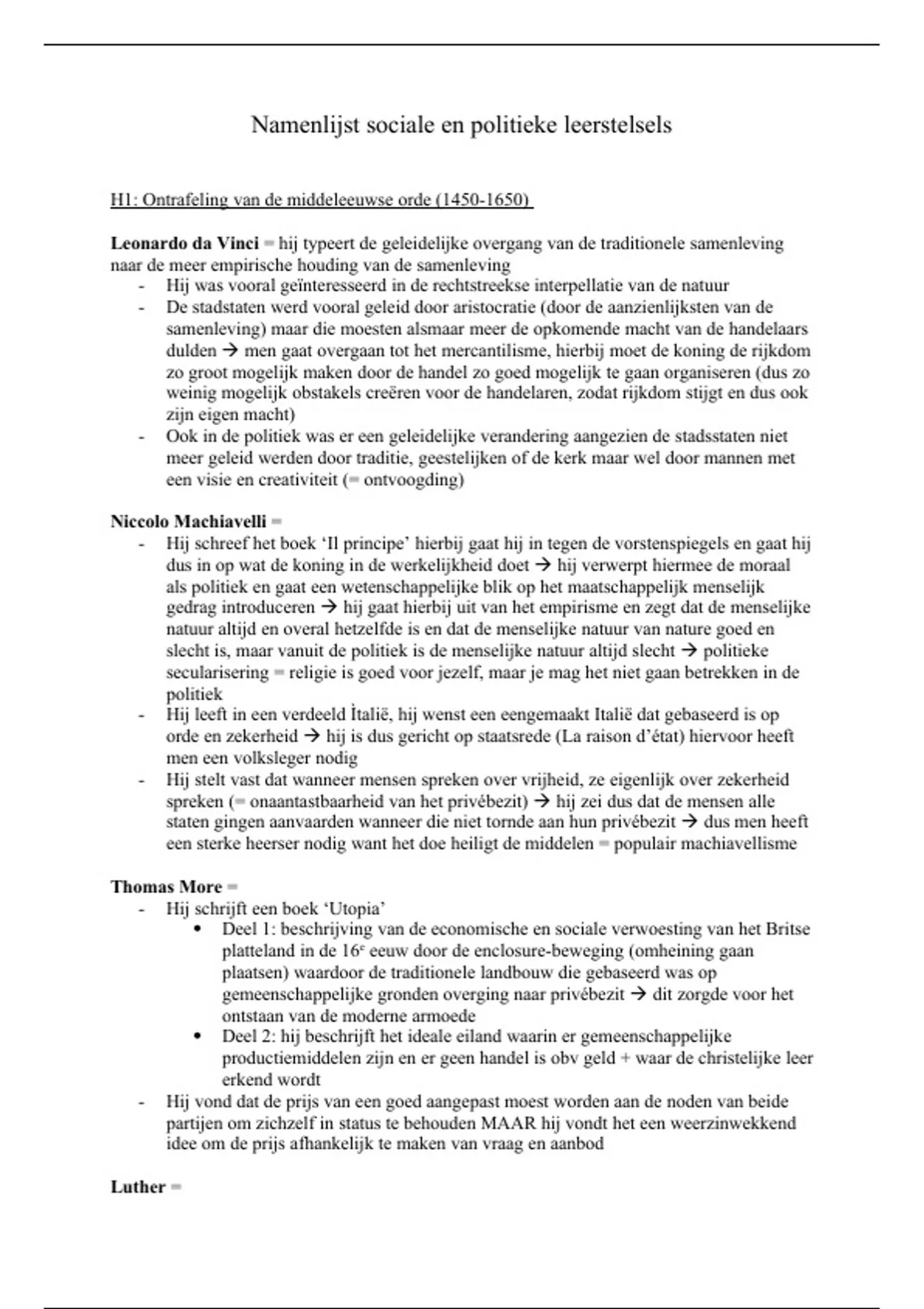 Leonardo da Vinci = hij typeert de geleidelijke overgang van de traditionele samenleving