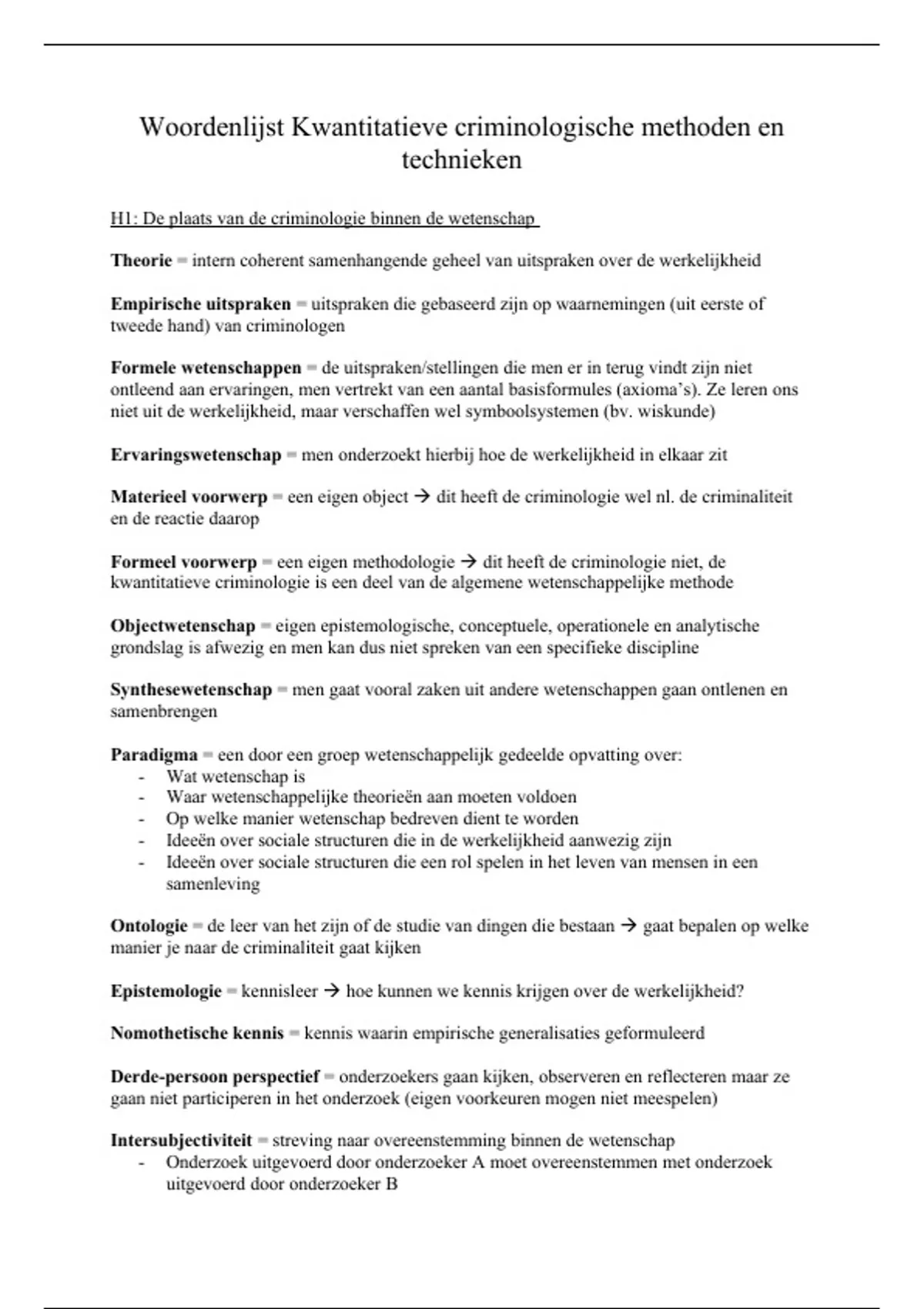 Samenvatting Woordenlijst Kwantitatieve criminologische methoden en technieken