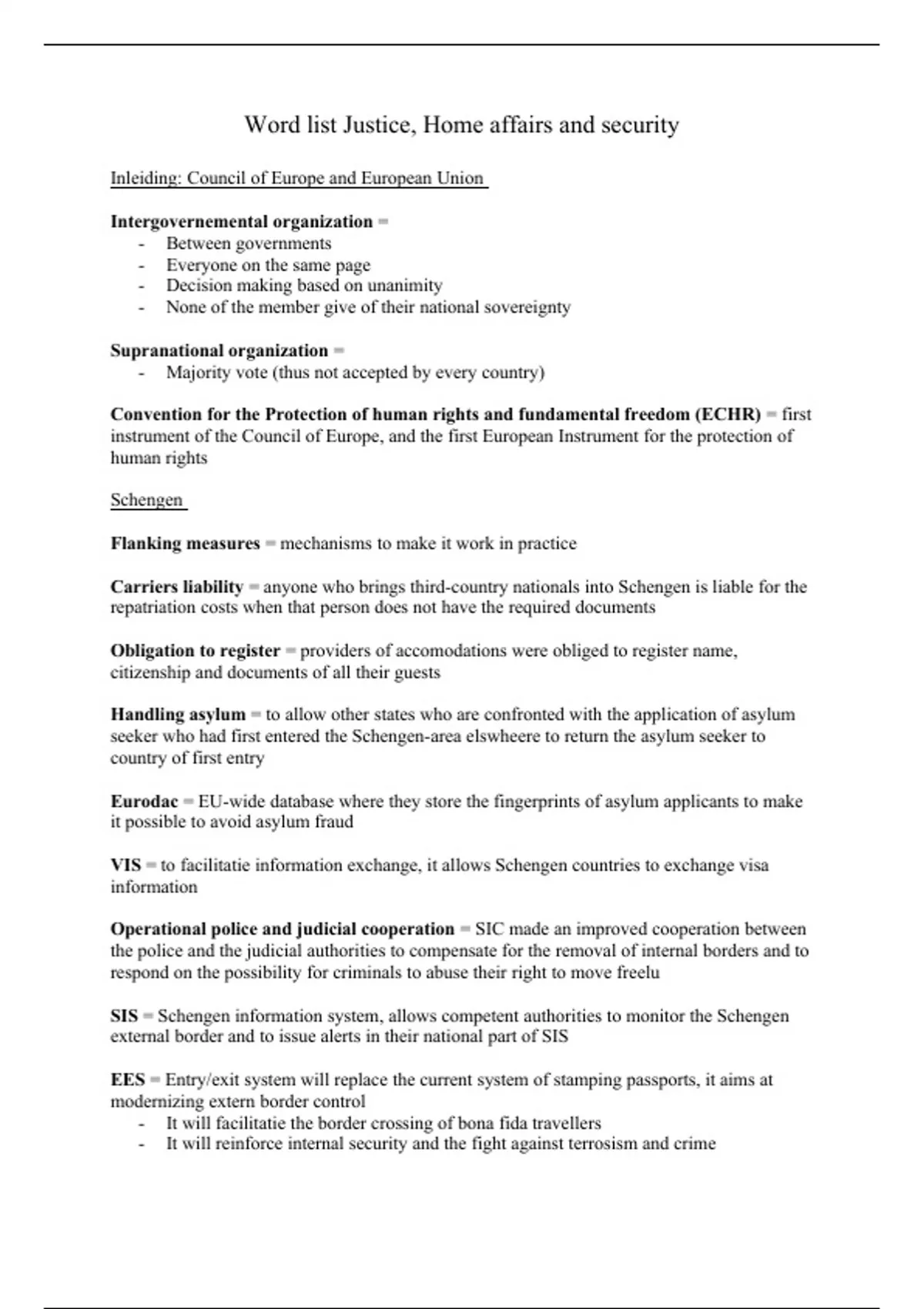 Word list Justice, Home affairs and security