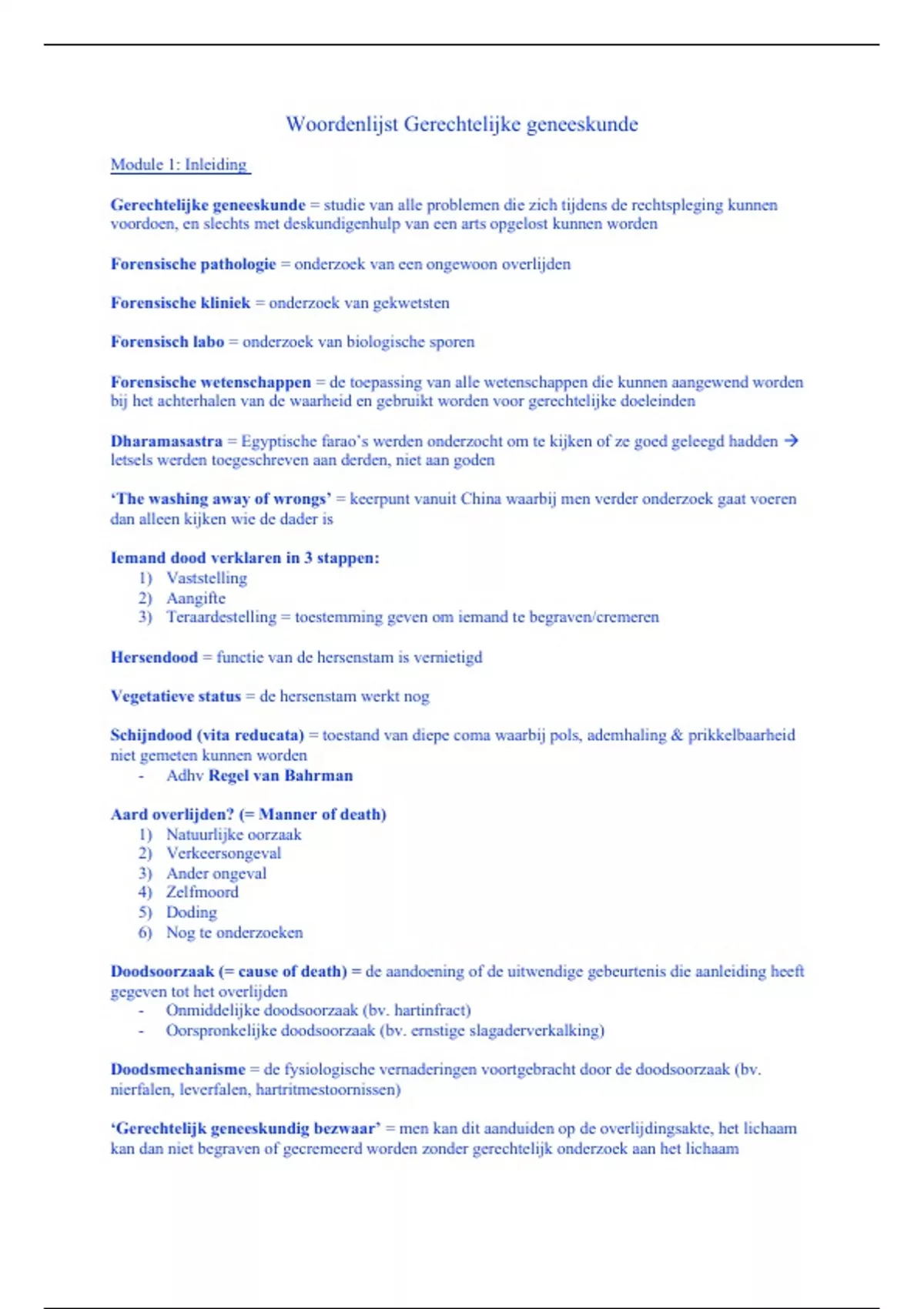 Samenvatting Woordenlijst Gerechtelijke geneeskunde