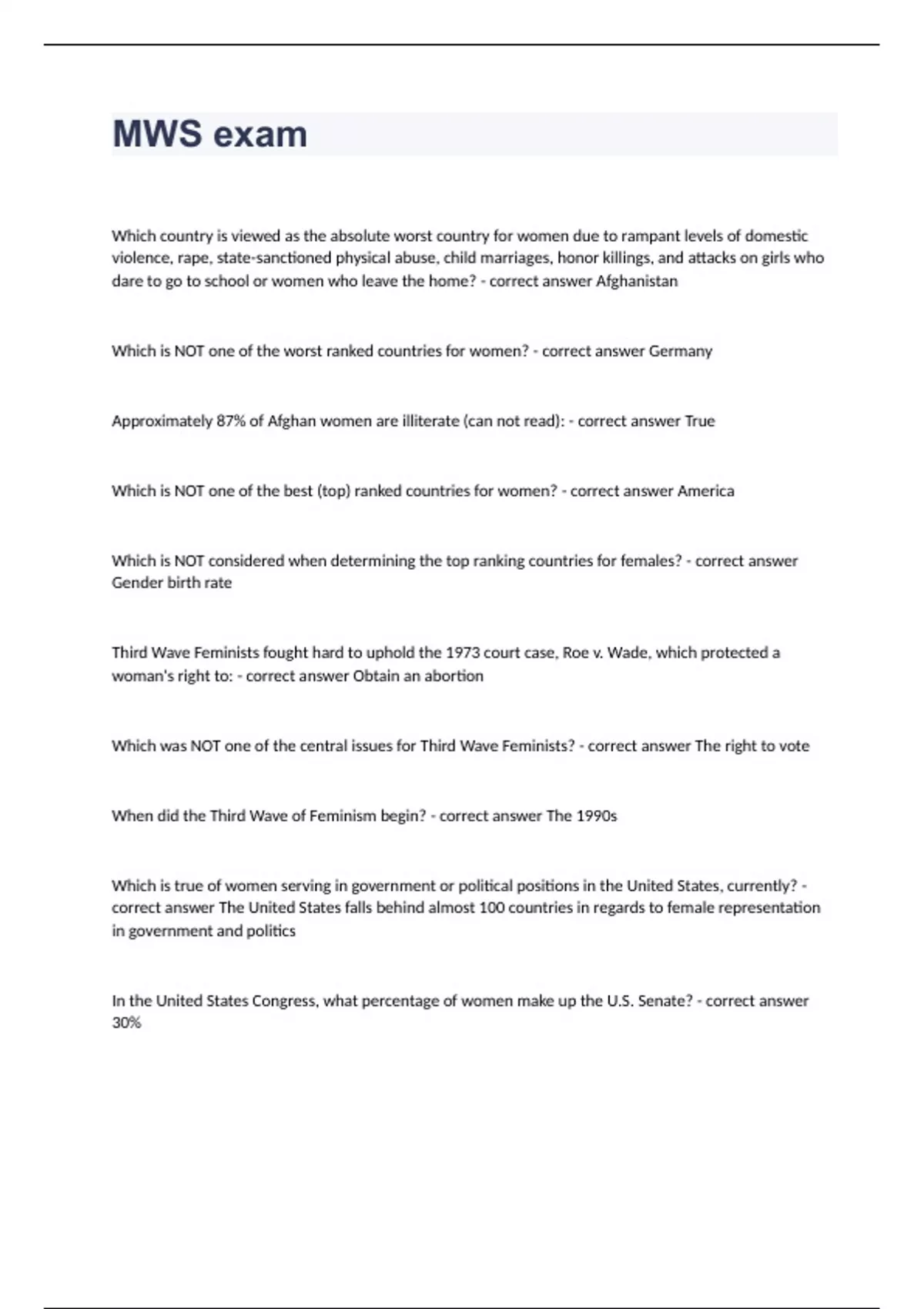 MWS exam(questions correctly answered)2023