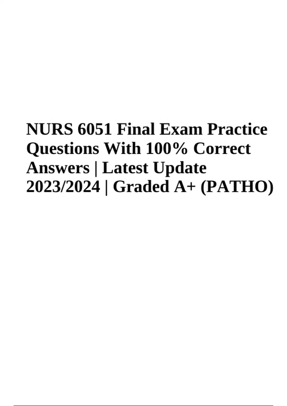 NURS 6051 Final Exam Practice Questions With 100% Correct Answers | Latest Update 2023/2024 | Graded A+ (PATHO