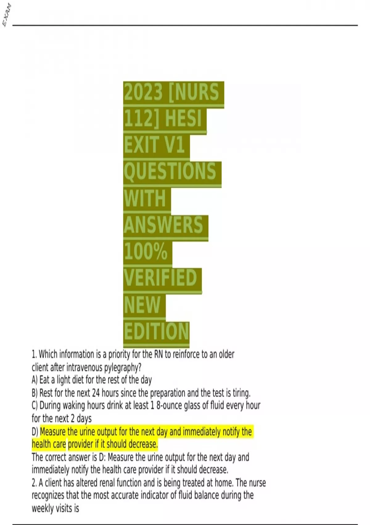 2023 [NURS 112] HESI EXIT V1 QUESTIONS WITH ANSWERS 100% VERIFIED NEW EDITION