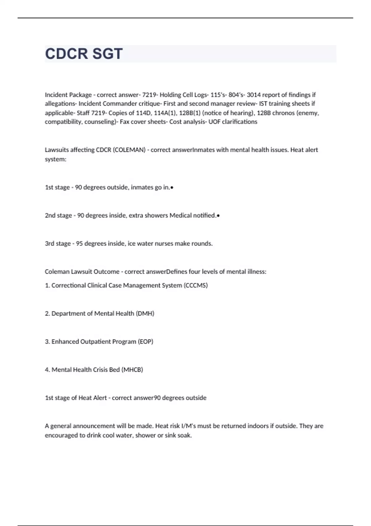 CDCR-Corrections Officer Exam 2023 with 100% correct answers