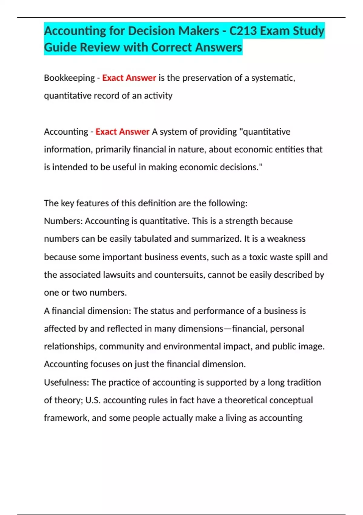 ,Accounting for Decision Makers - C213 Exam Study
