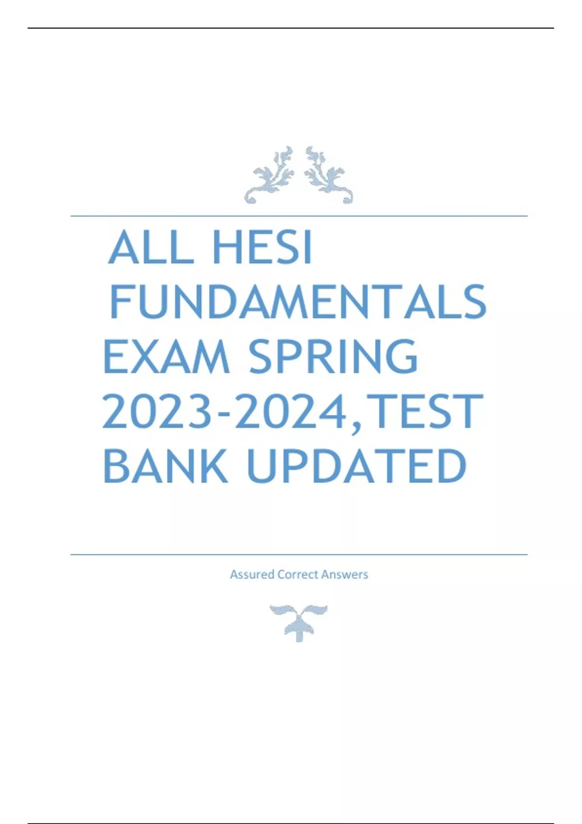 ALL HESI FUNDAMENTALS EXAM SPRING ,TEST BANK UPDATED