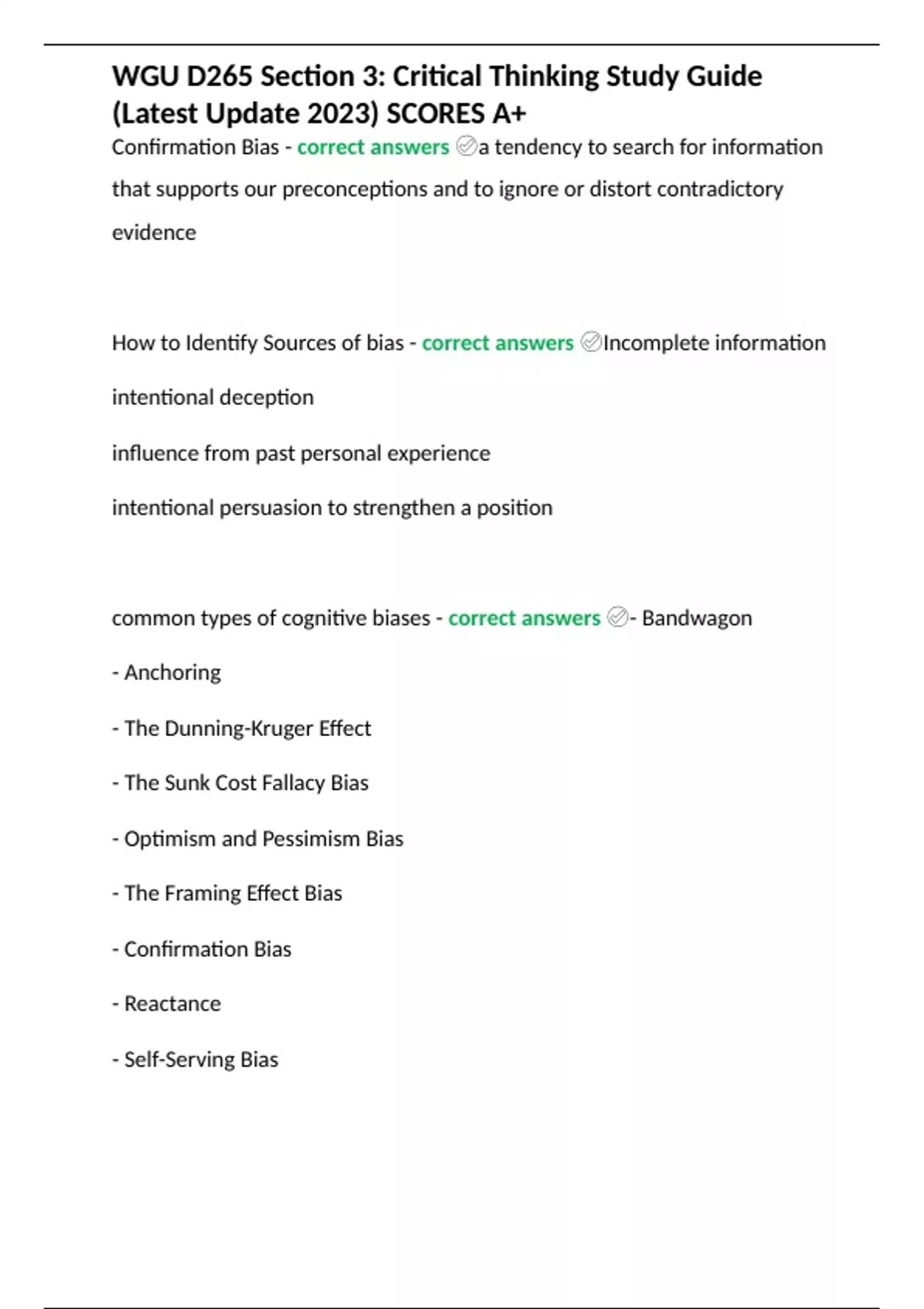 WGU D265 Section 3: Critical Thinking Study Guide (Latest Update 2023) SCORES A+