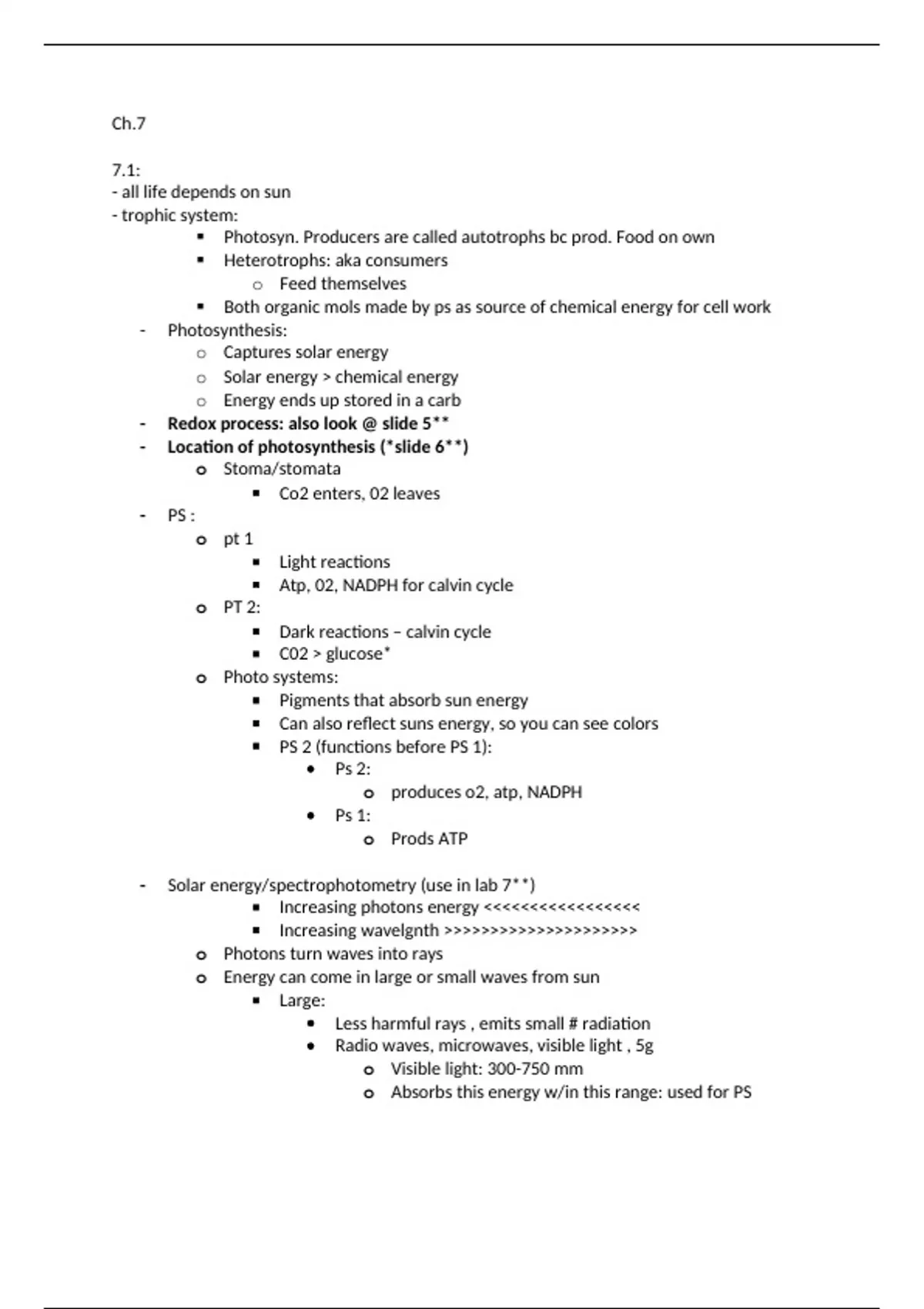 Absorption spectrum, spectrophotometer, solar energy and waves, redox process, location of photosynthesis