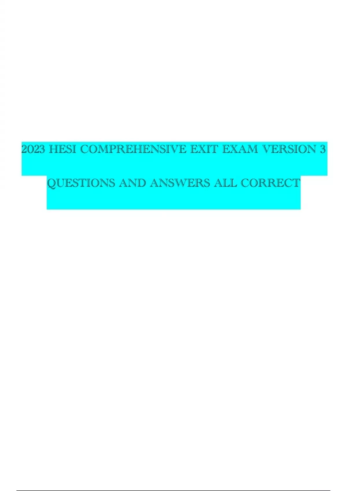 2023 HESI COMPREHENSIVE EXIT EXAM VERSION 3 QUESTIONS AND ANSWERS ALL CORRECT