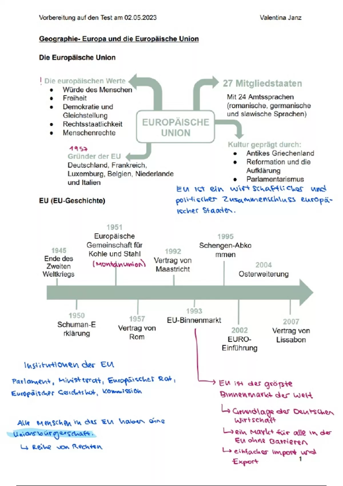 Dieses Dokument ist eine Zusammenfassung von der EU-Geschichte bis zum Klima in Europa. Es erklärt wie ein Klima Diagramm zu bewerten ist und zeigt den Wandel in der Demographie